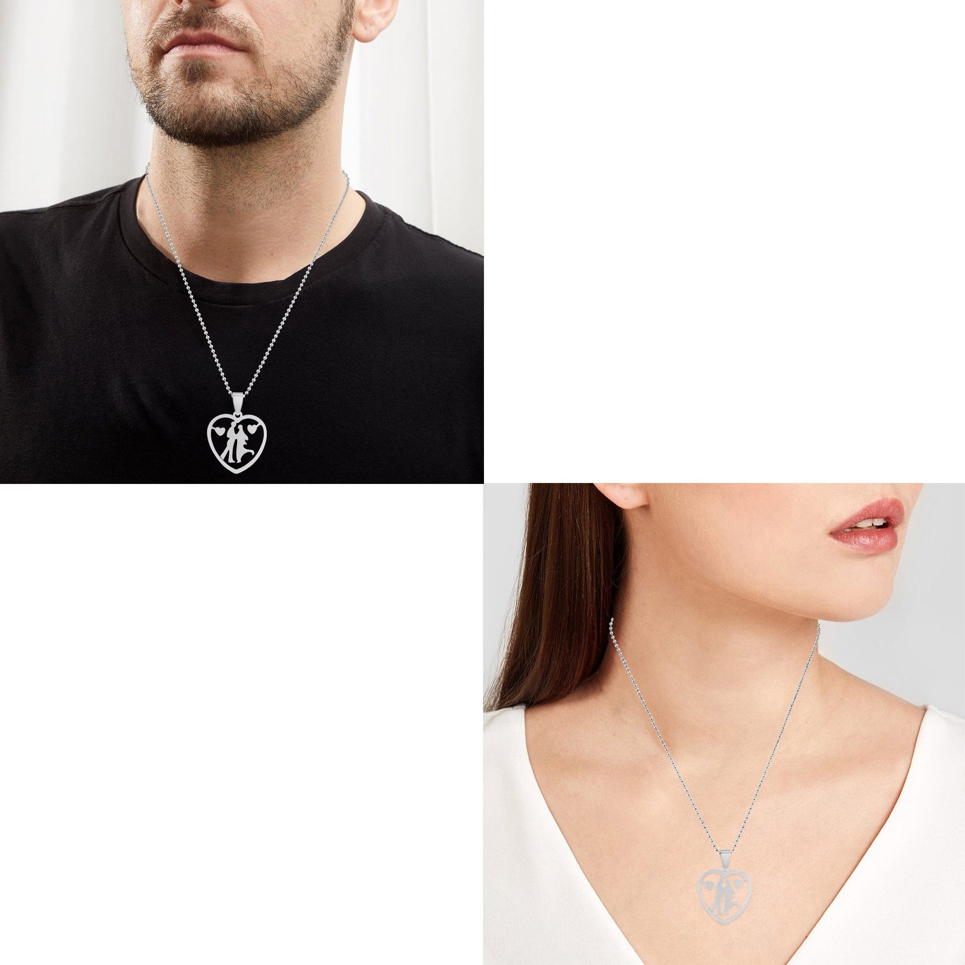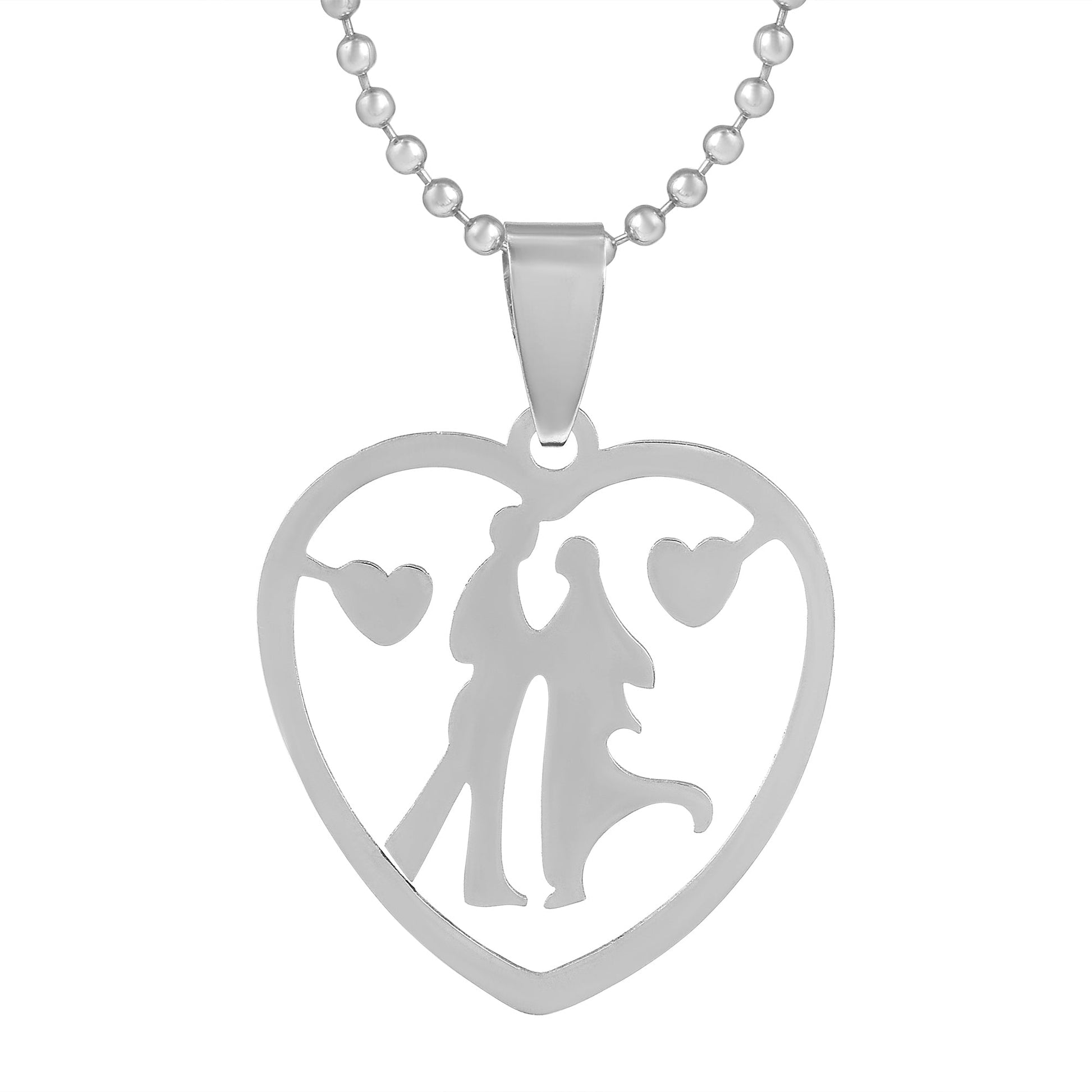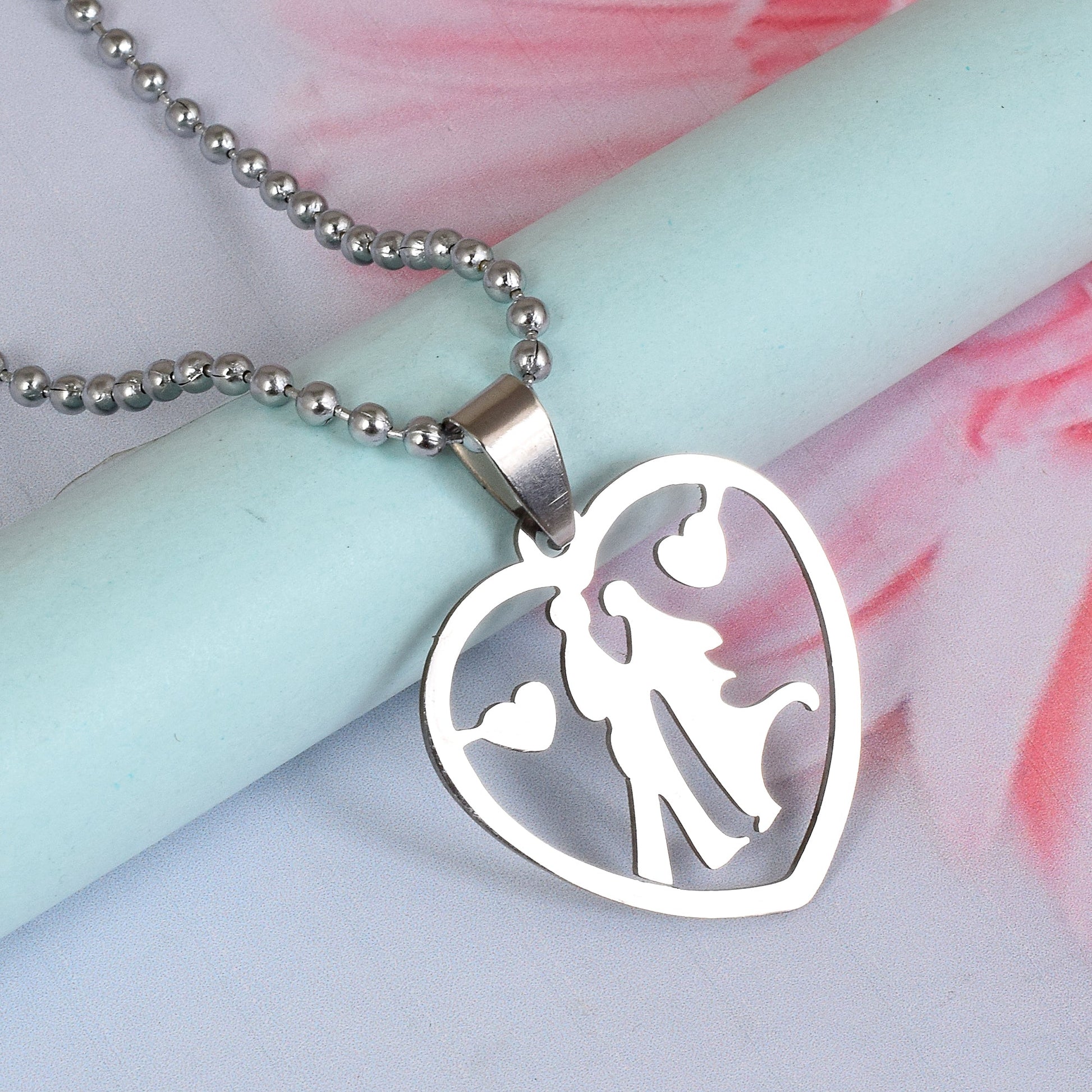 Silverplated Love Couple Heartshape Love Chain Pendant