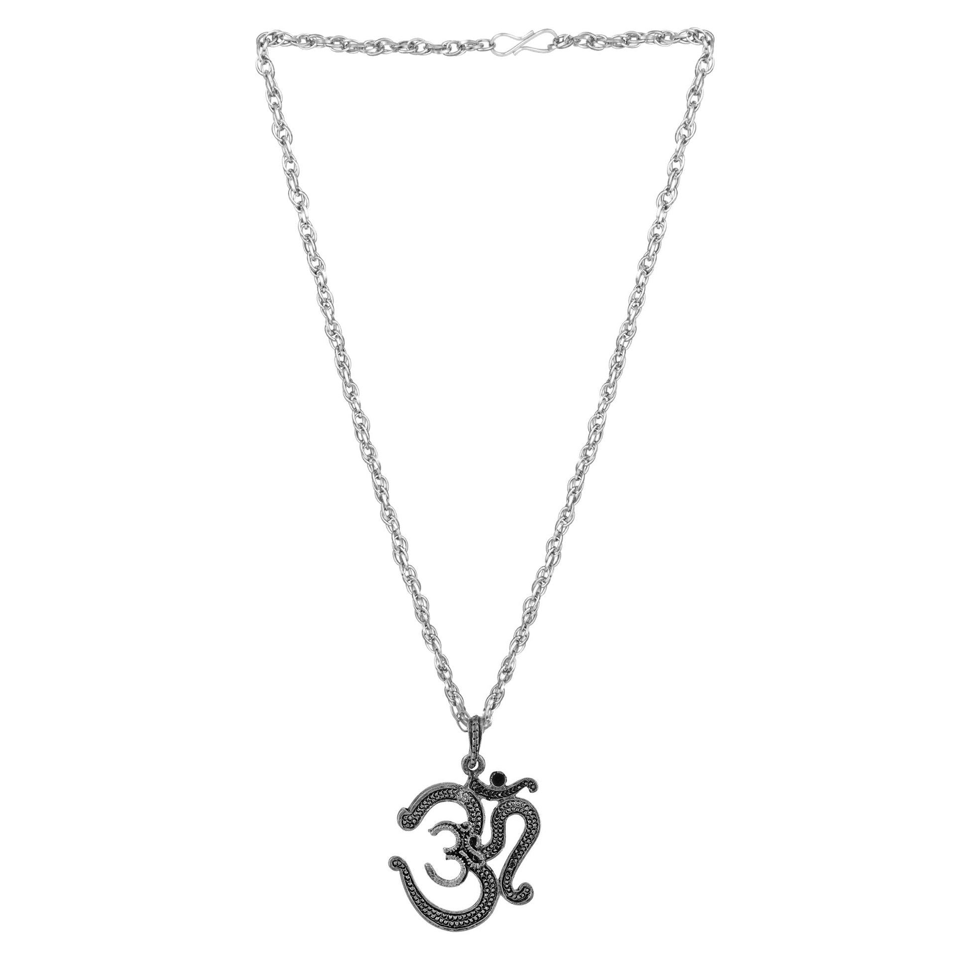 • Oxidised Silver finish, Brass Om chain pendant