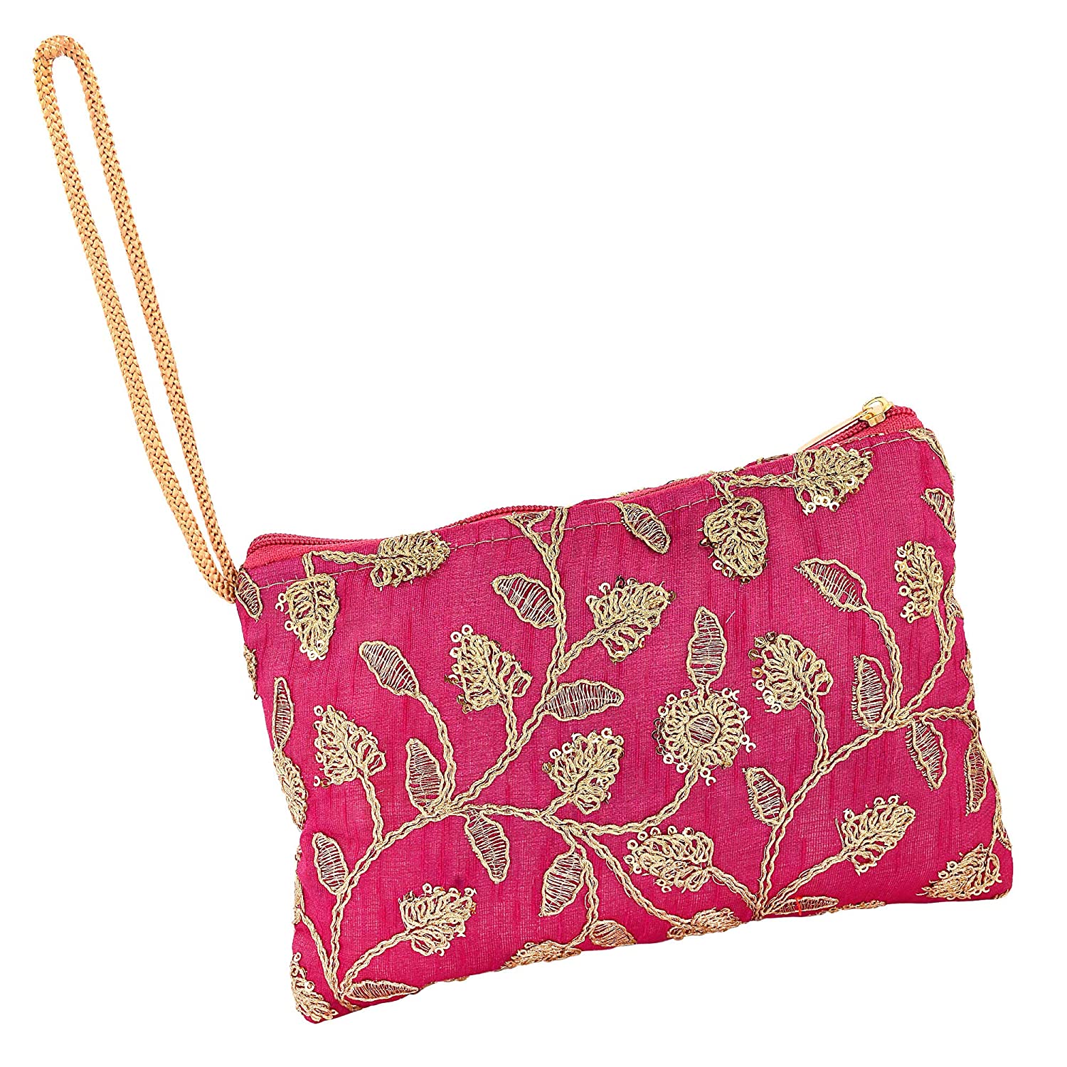 Satin Rani Pink Handmade Ethnic small Purse Handbag women