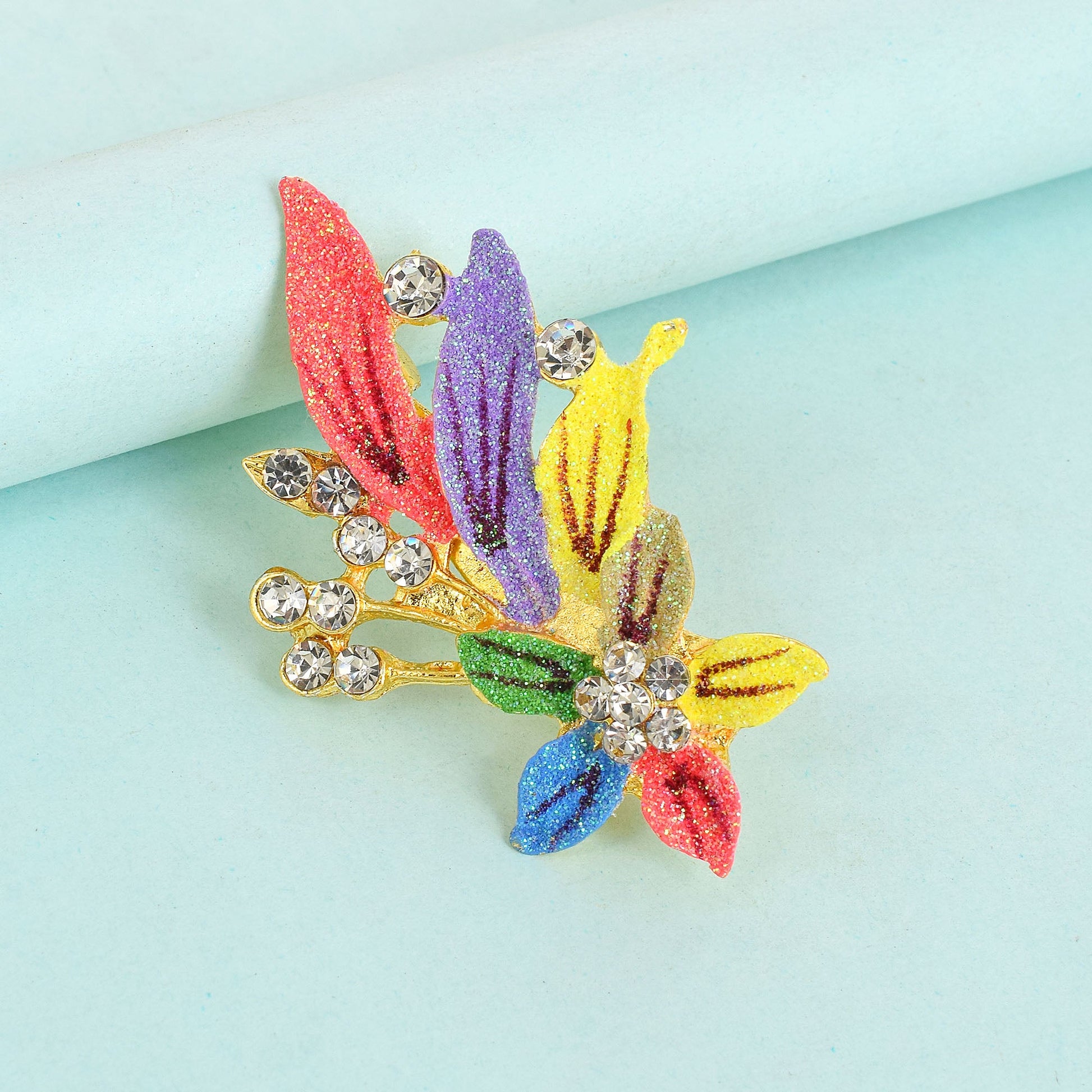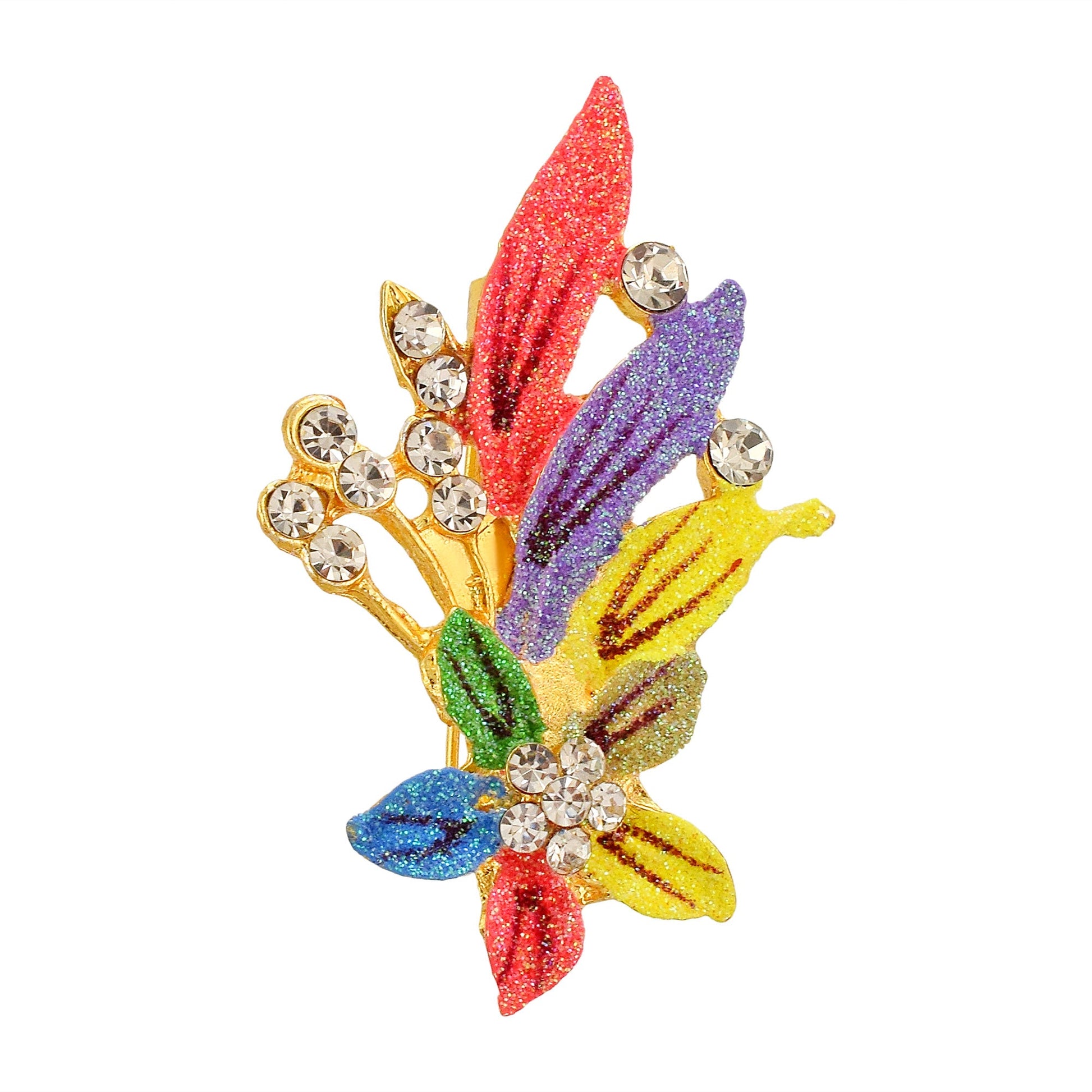 Brass Goldplated Colourful Floral design Zari Finish Sareepin Dupatta pin Brooch