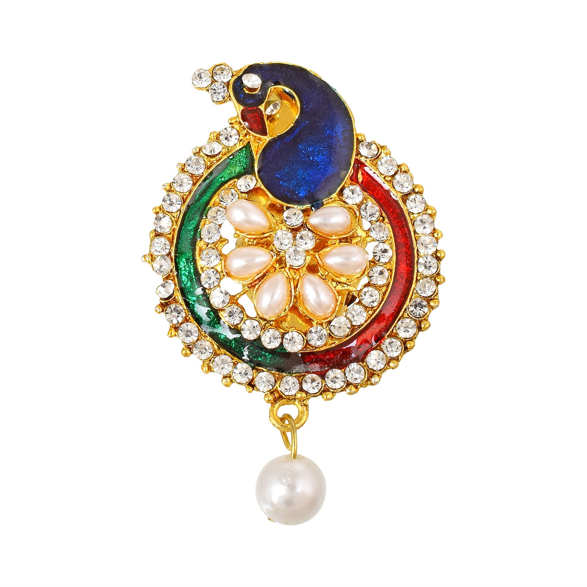 Brass Goldplated CZ & Pearls Meenakari Peacock design Fashion Sareepin Dupatta pin Brooch