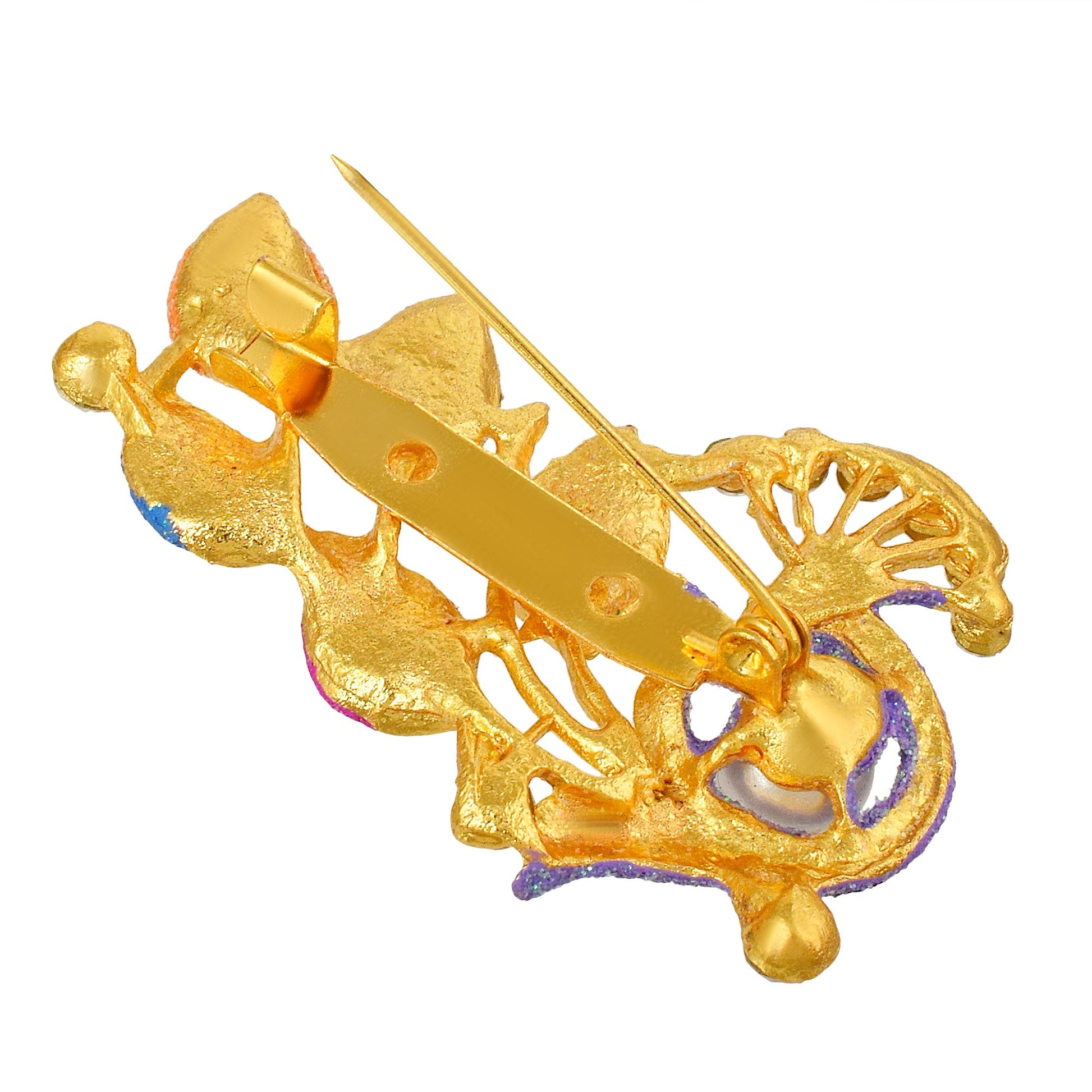 Brass Goldplated Dancing Peacock design Zari Finish Sareepin Dupatta pin Brooch