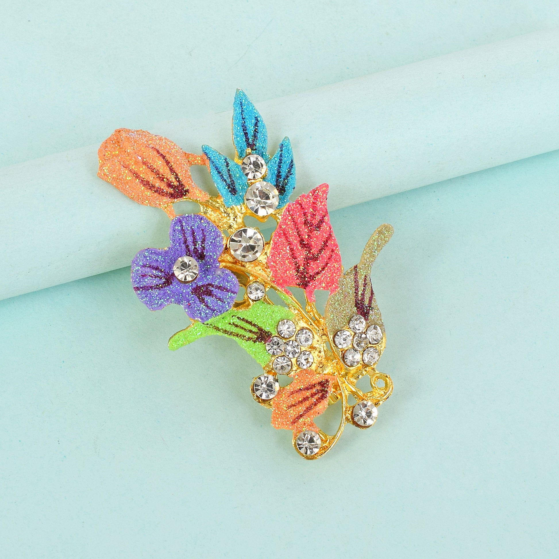 Brass Goldplated floral Bouquet design Zari Finish Sareepin Dupatta pin Brooch