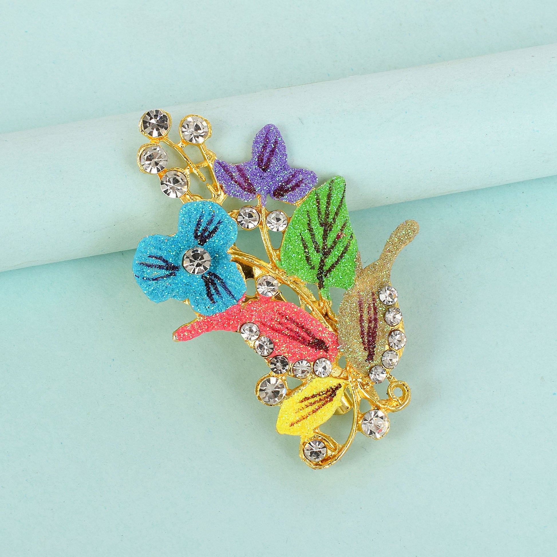 Brass Goldplated Imitation Diamond with Colourful Zari finish Floral Sareepin / Brooch
