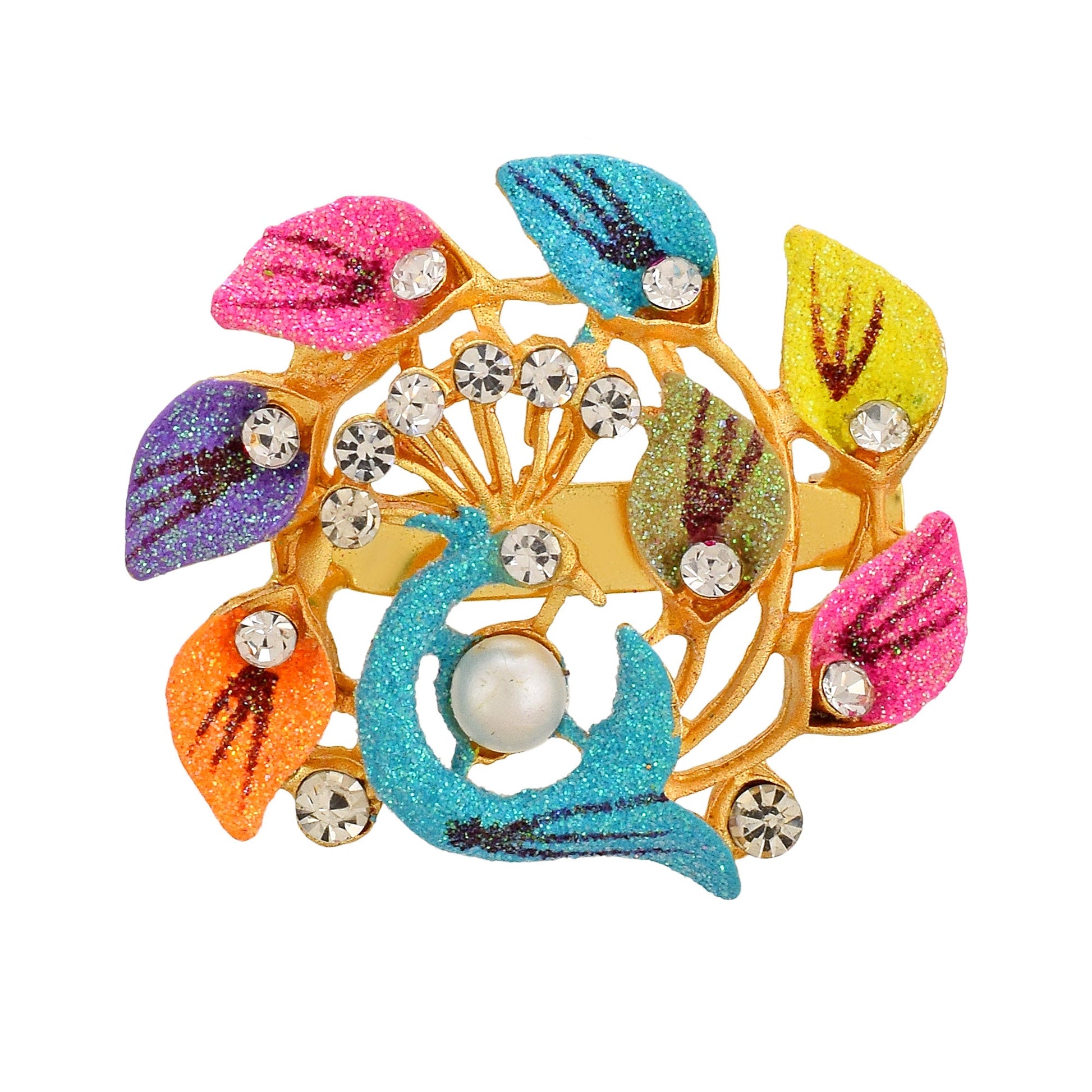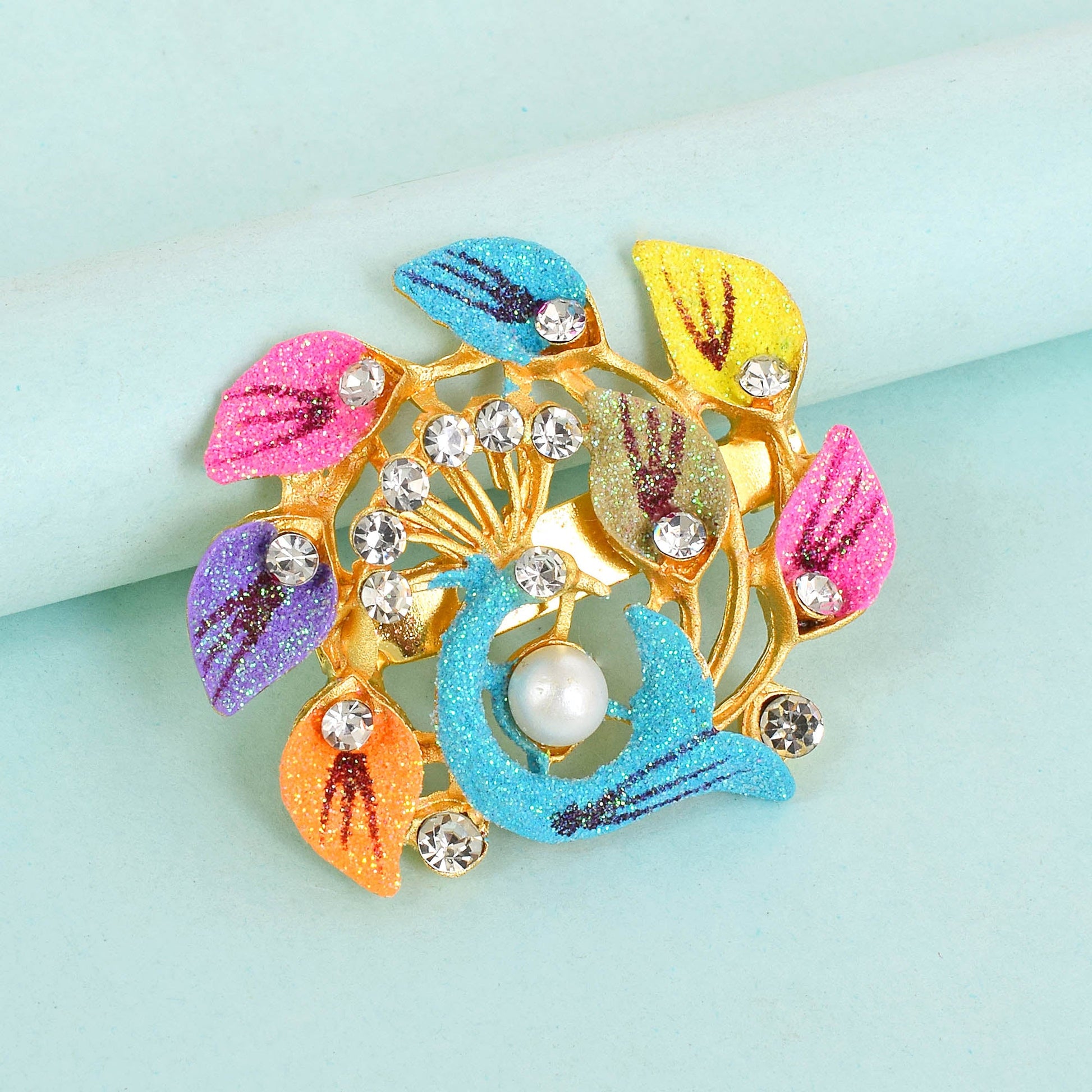 Brass Goldplated Multicolour Peacock design Zari Finish Sareepin Dupatta pin Brooch