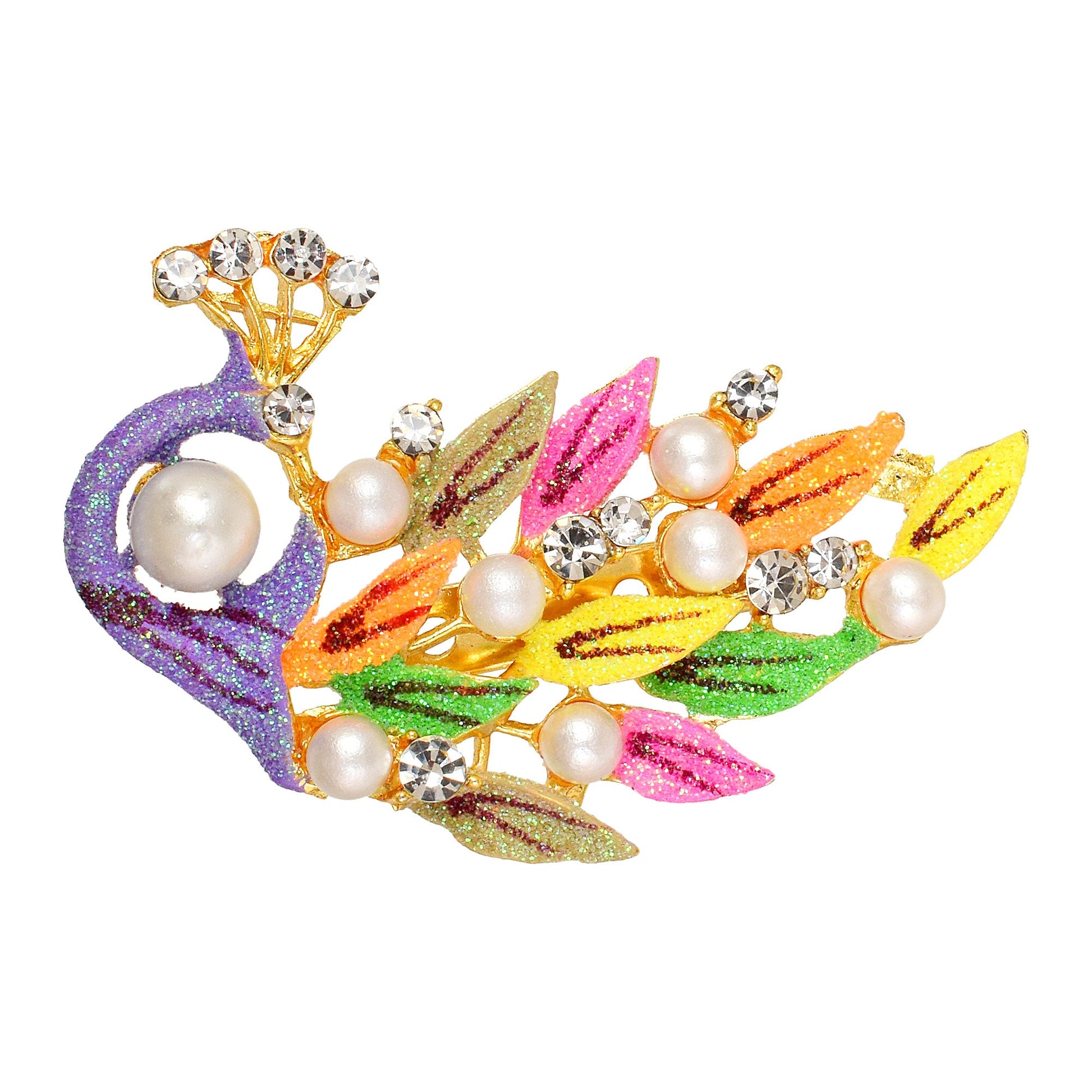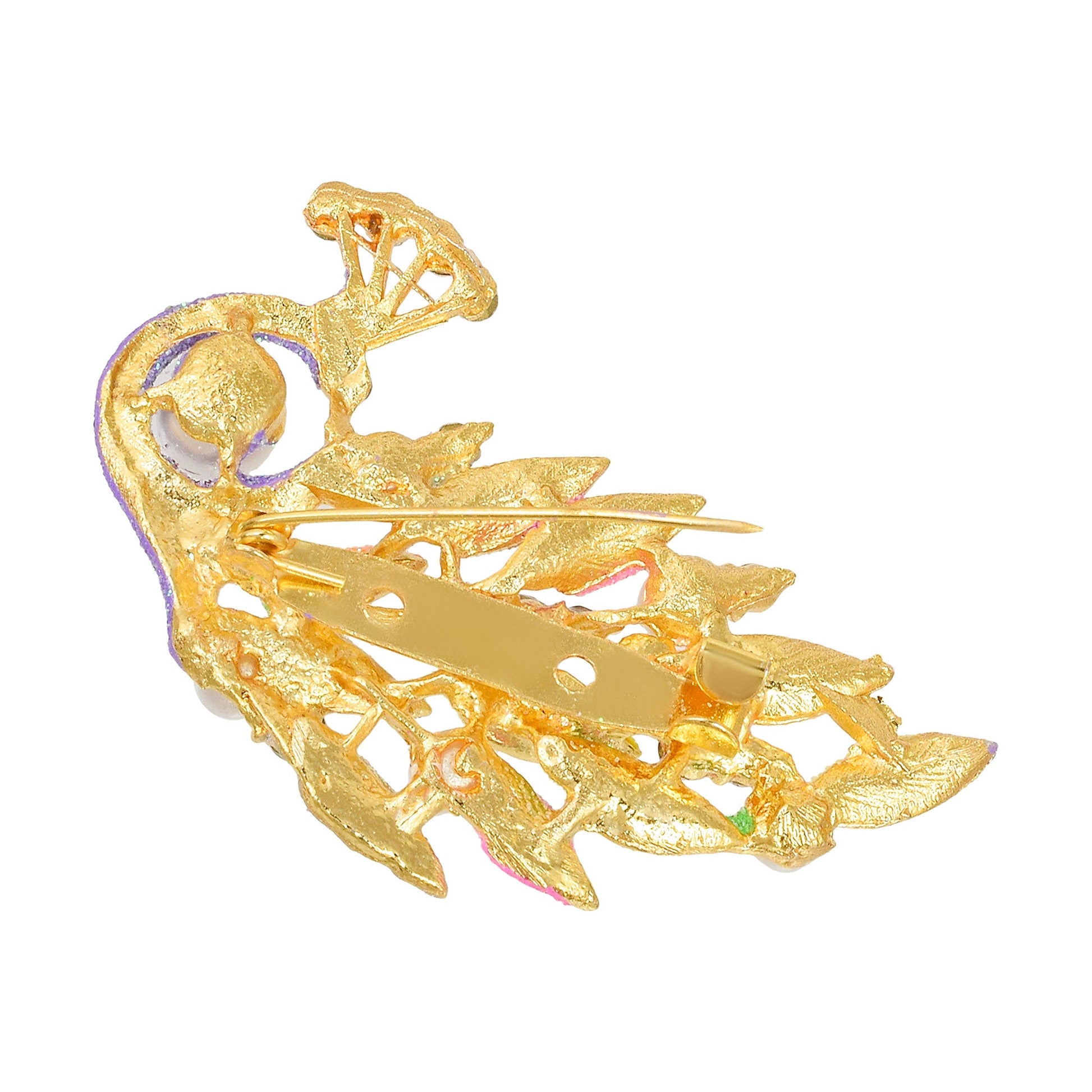 Brass Goldplated Pearl and CZ Zari Finish Peacock design Fashion Sareepin Dupatta Pallu pin Brooch