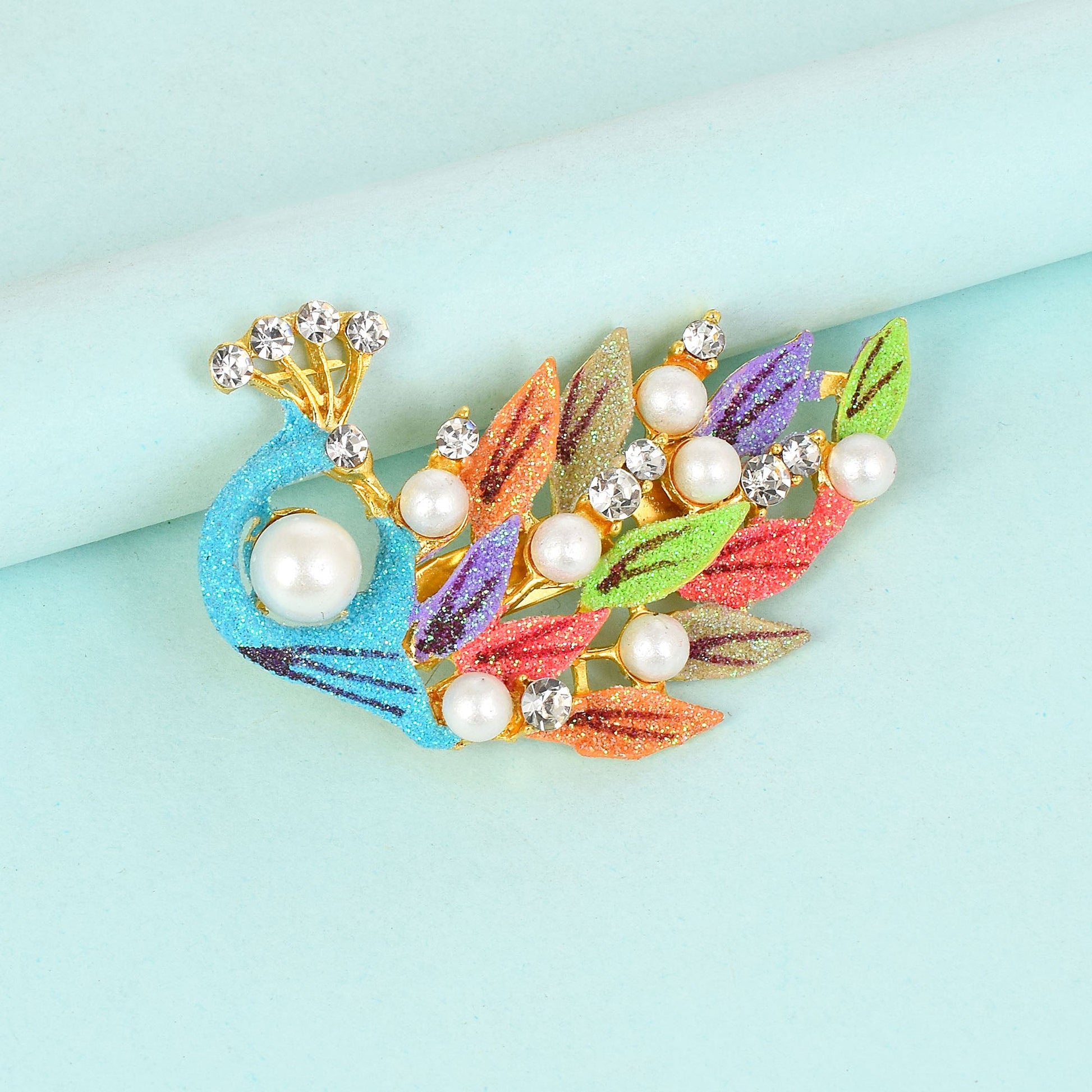 Brass Goldplated Pearl and CZ Zari Finish Peacock design Fashion Sareepin Dupatta pin Brooch