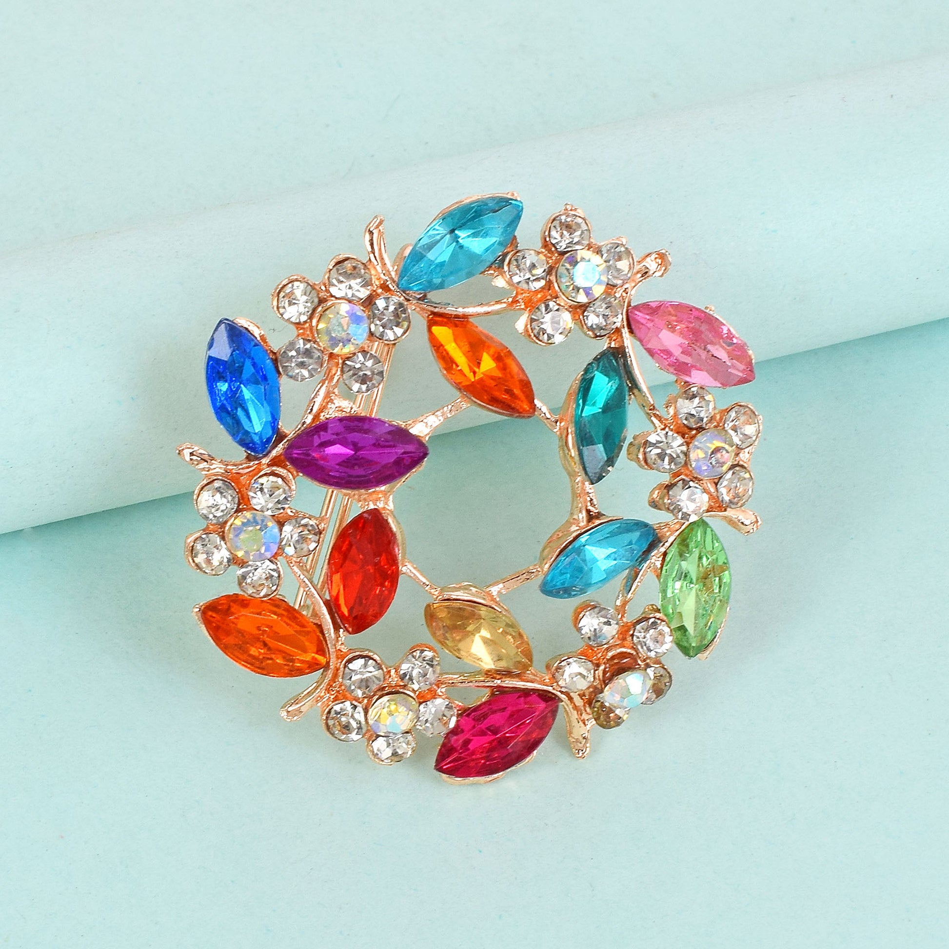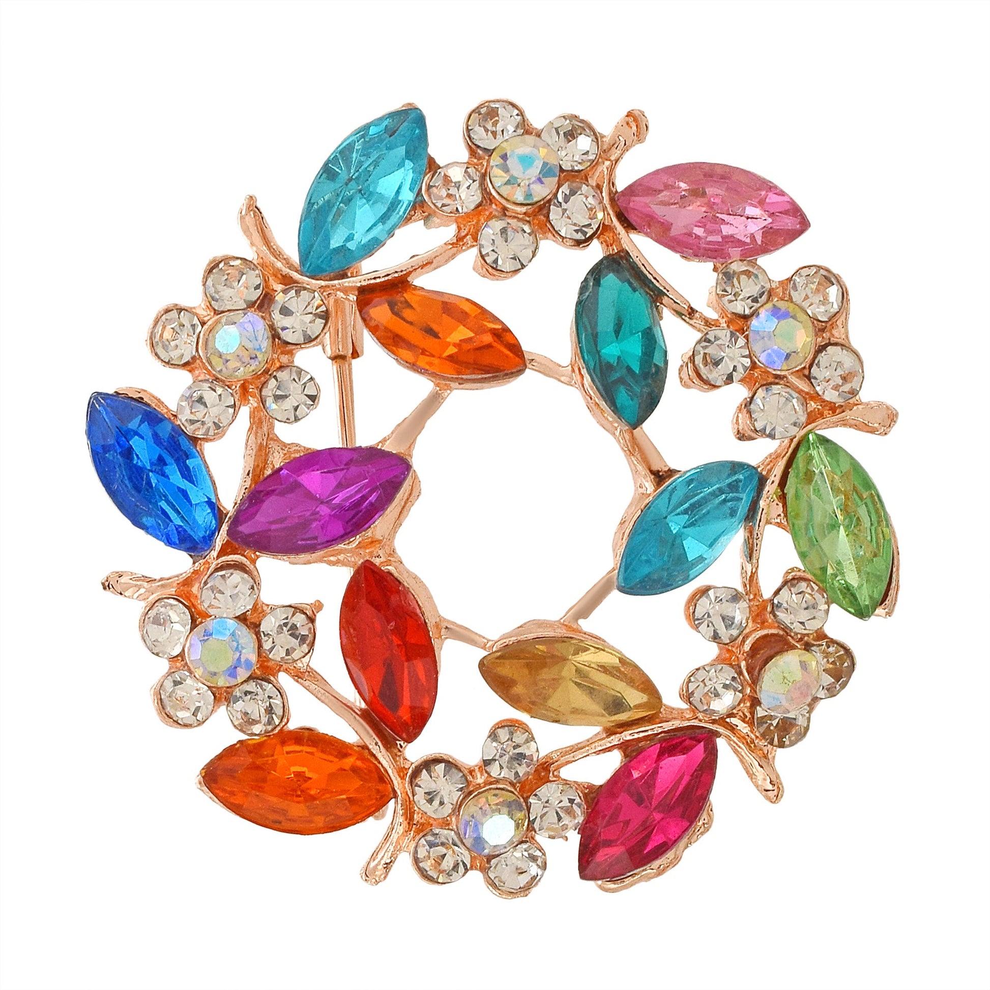 Brass Pink Rose Goldplated Colourful Cubic Zirconia Fashion Sareepin / Brooch