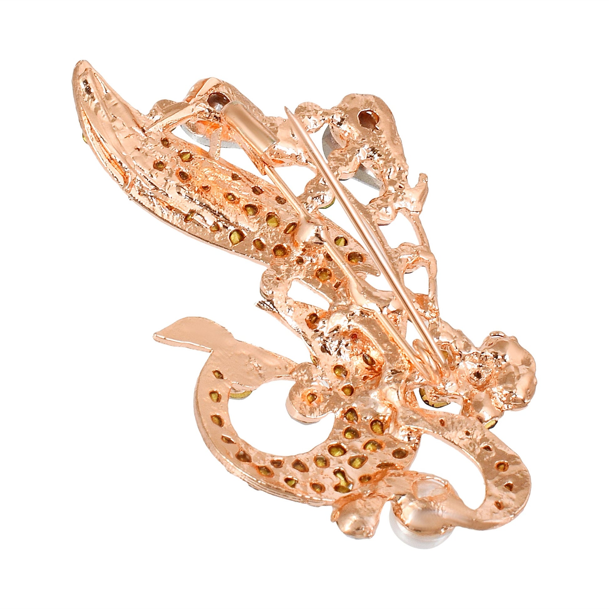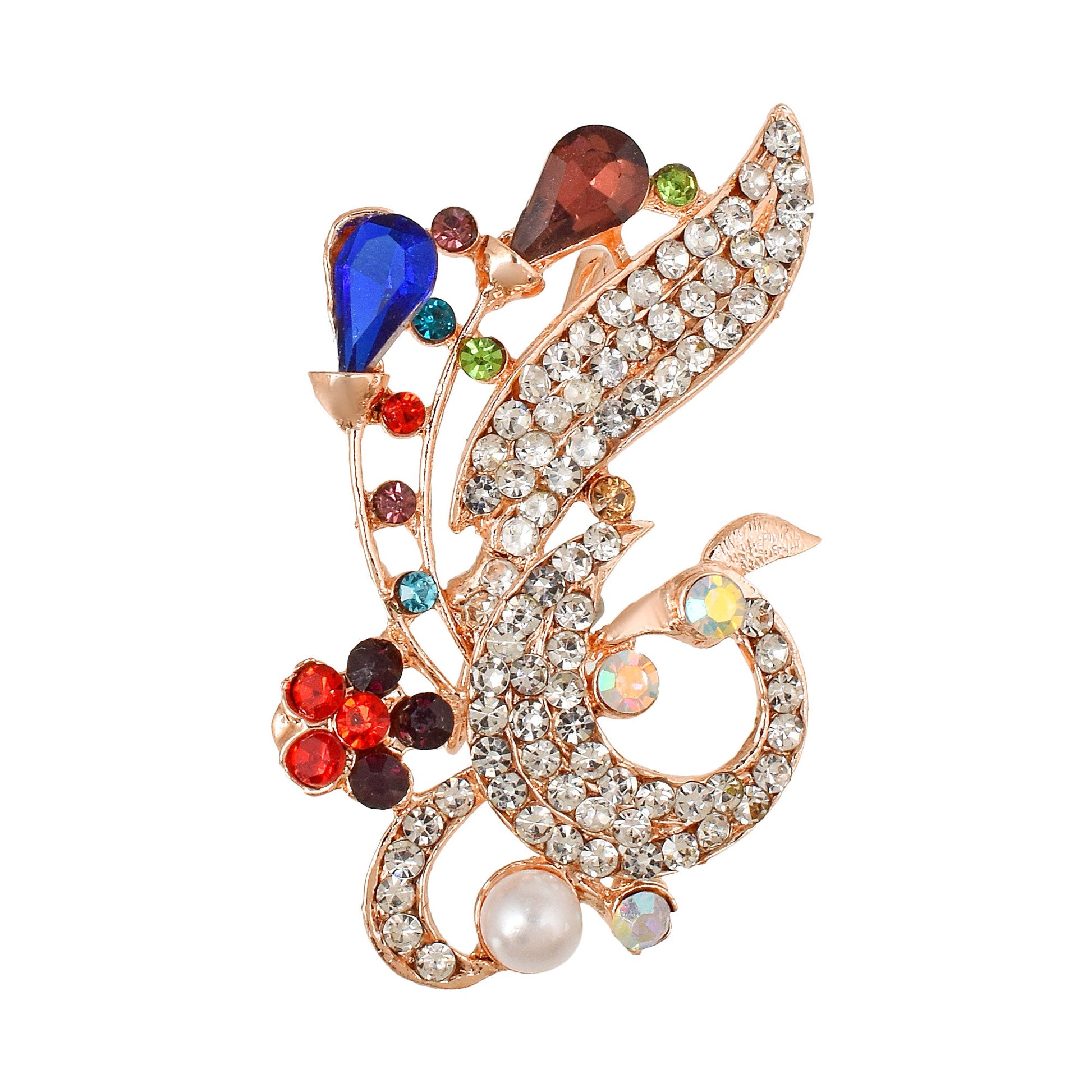 Brass Pink Rose Goldplated CZ Peacock design Fashion Sareepin / Dupatta Pallu pin/ Brooch