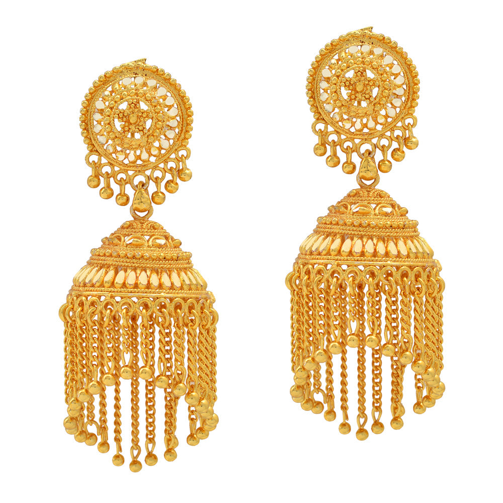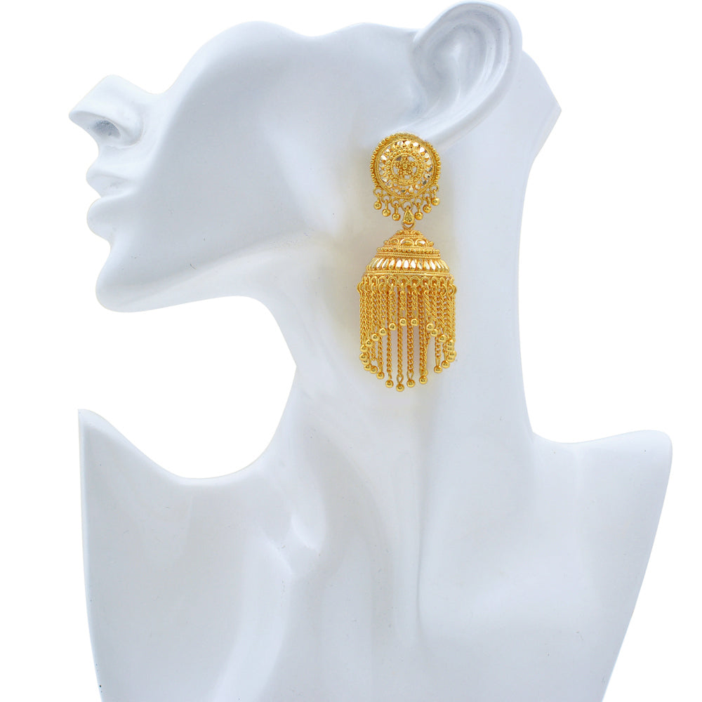 Micron Goldplated Handmade Tassled Jhalar Jhumki (JHAT2644)