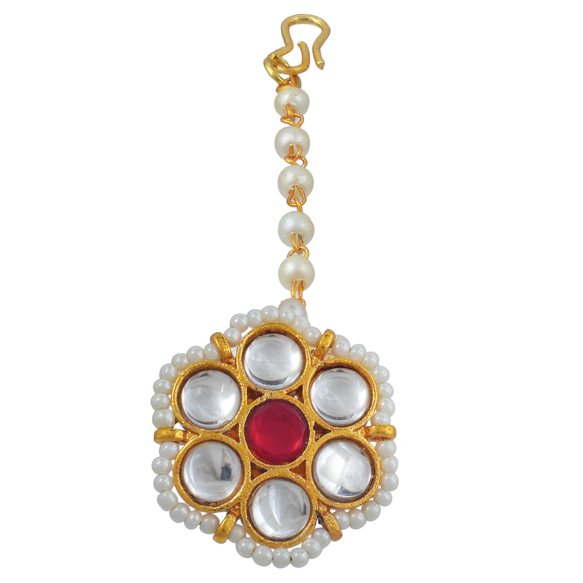 Gold Plated Kundan Pearl Small Bindi BORLA Maangtika Hair Jewellery Accessory