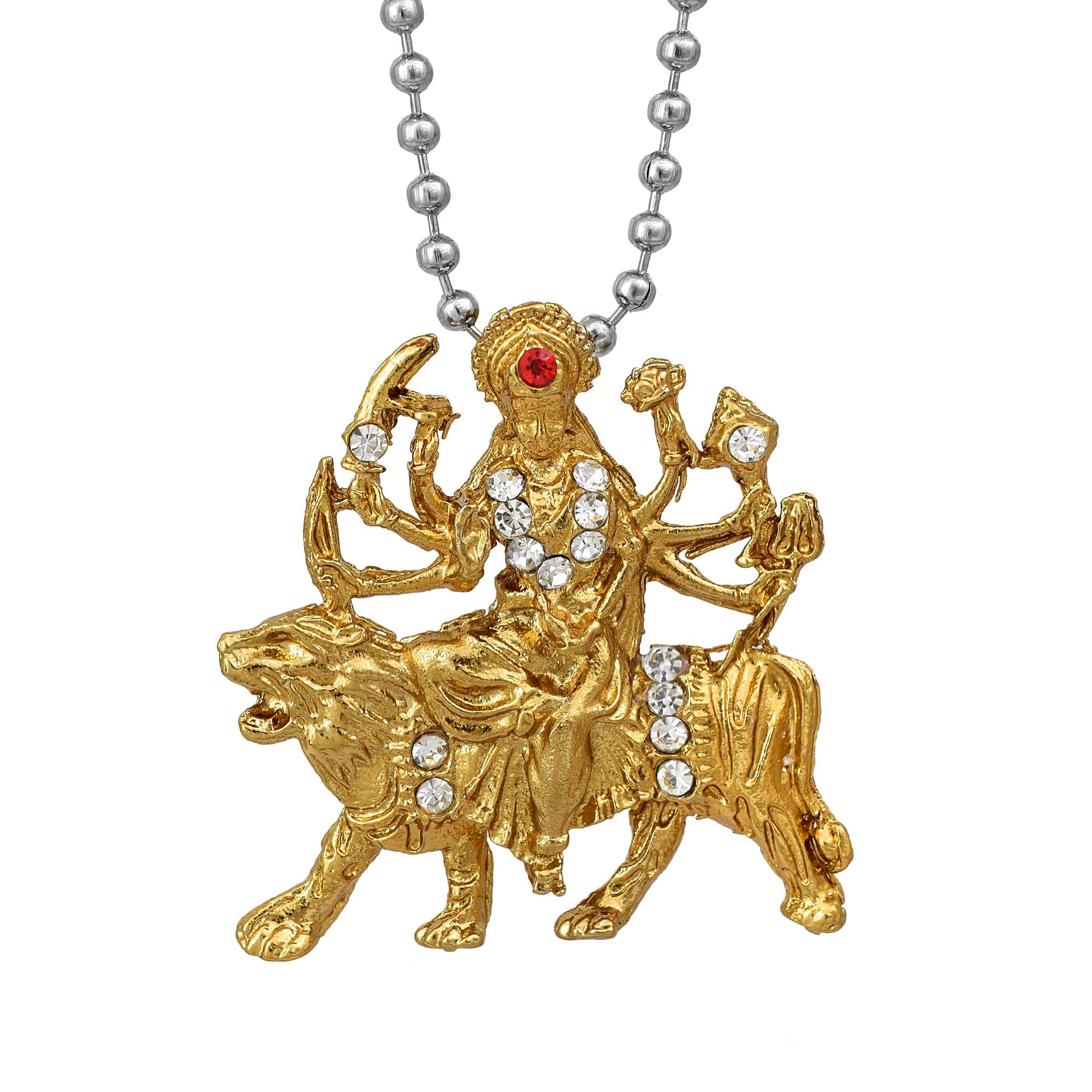 Goldplated, Durga,Sherawali Mata chain pendant Hindu Jewelery (PCKL1069)