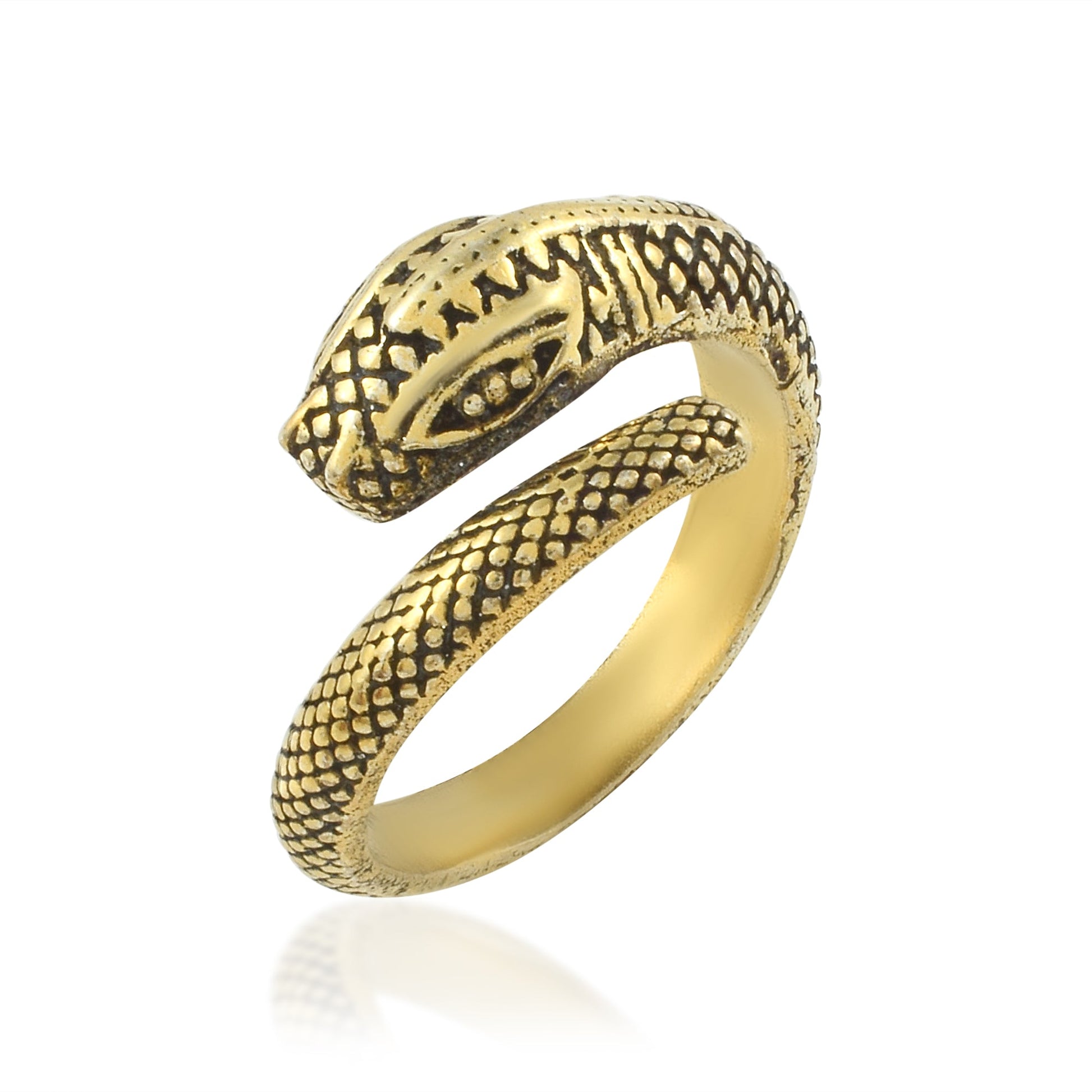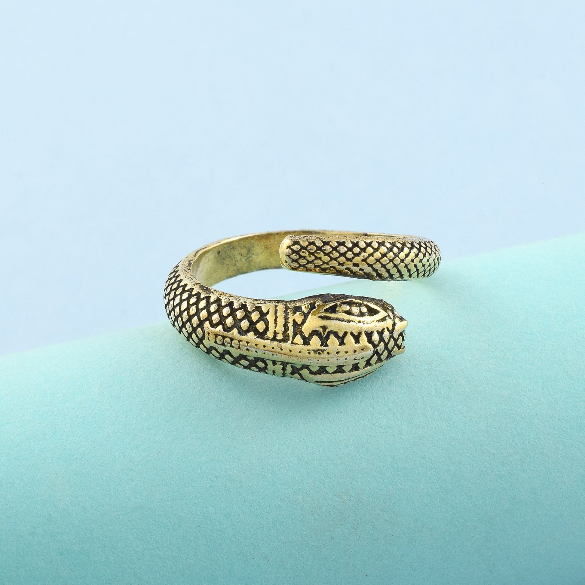Brass Antique Finish Nagdevta Snake Adjustable Open End Free Size Finger Ring