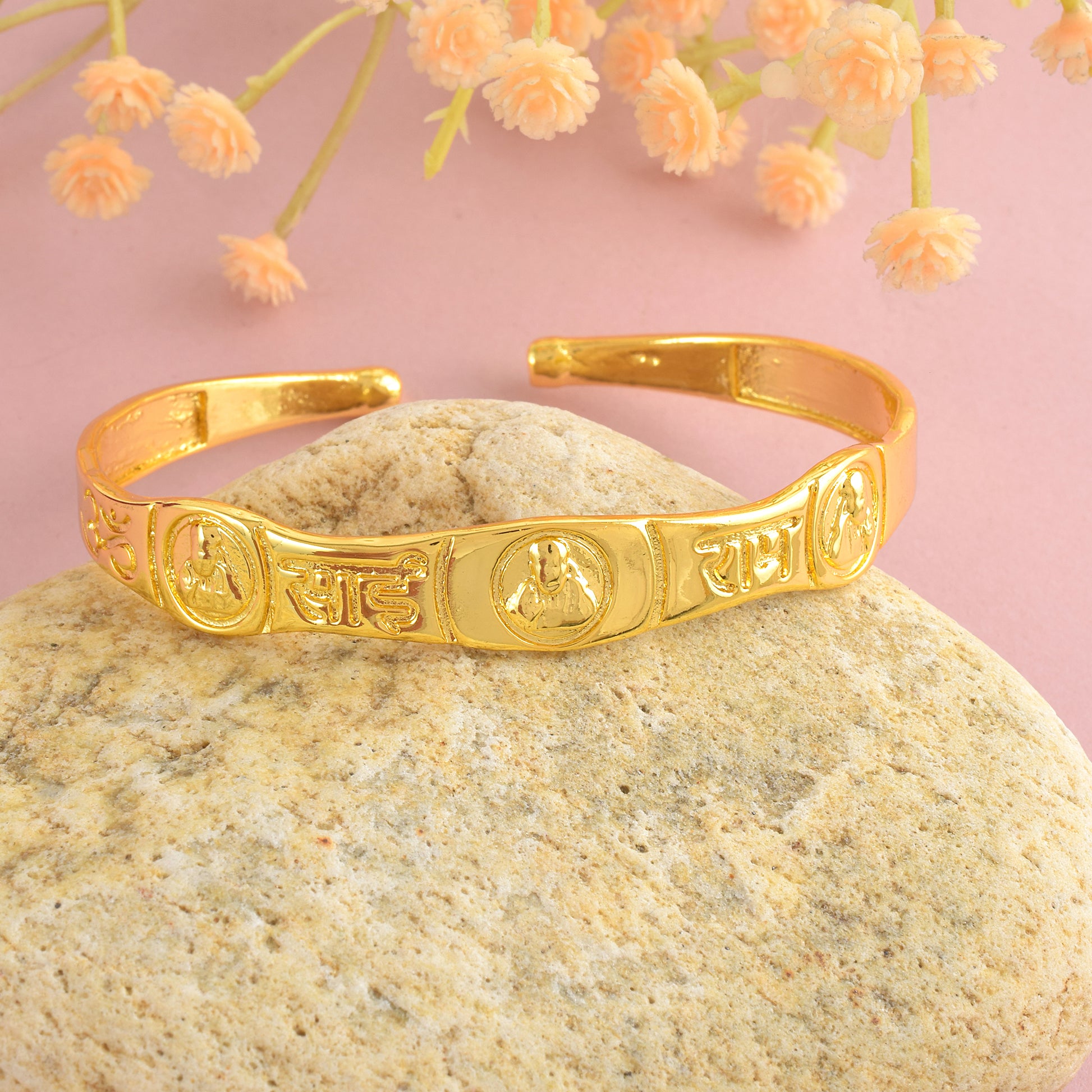 Brass Micron Gold plated OM SAI RAM free size Unisex Kada (KDDM3757)