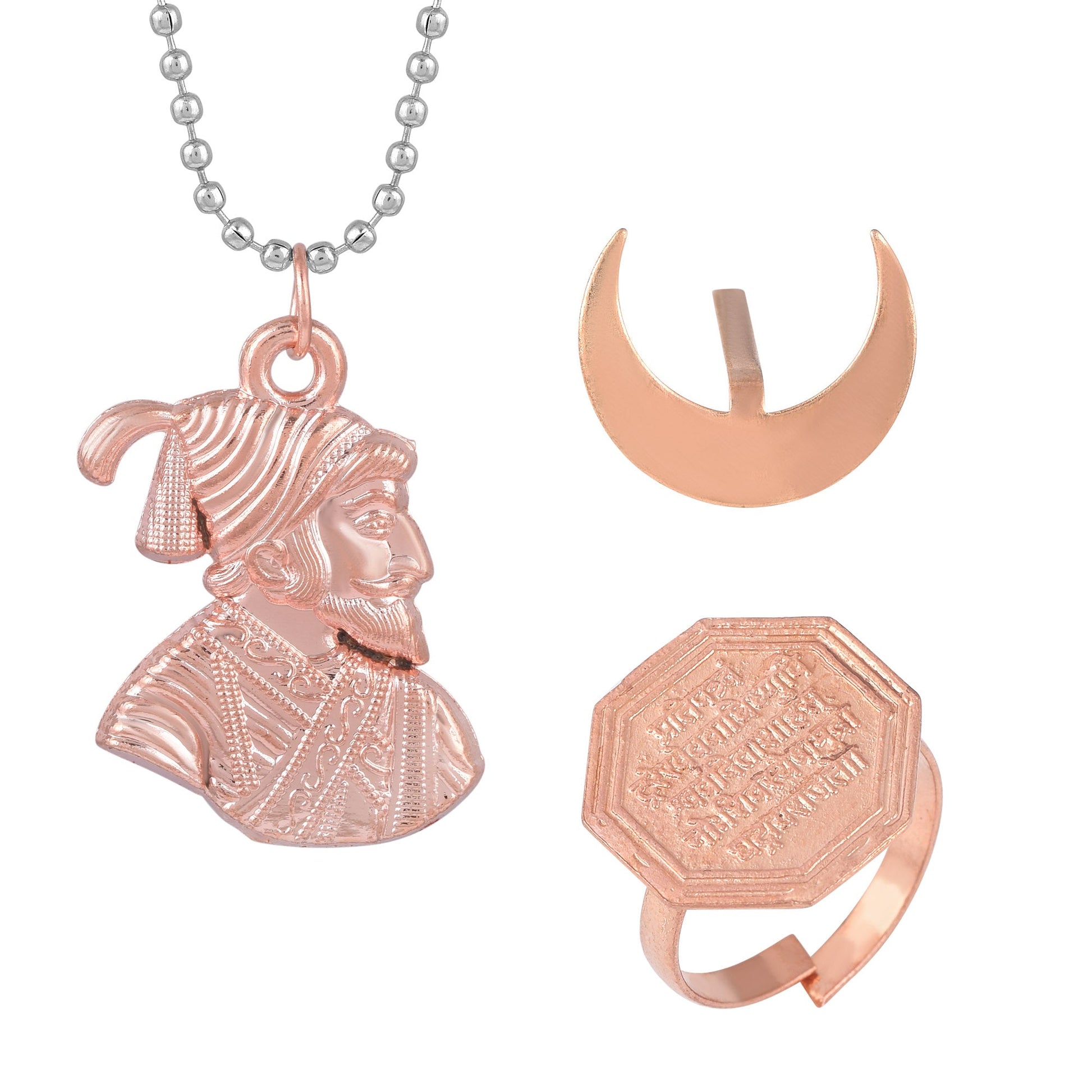 Copper Shivaji Pendant, Rajmudra and Chandrakor Combo Men Women