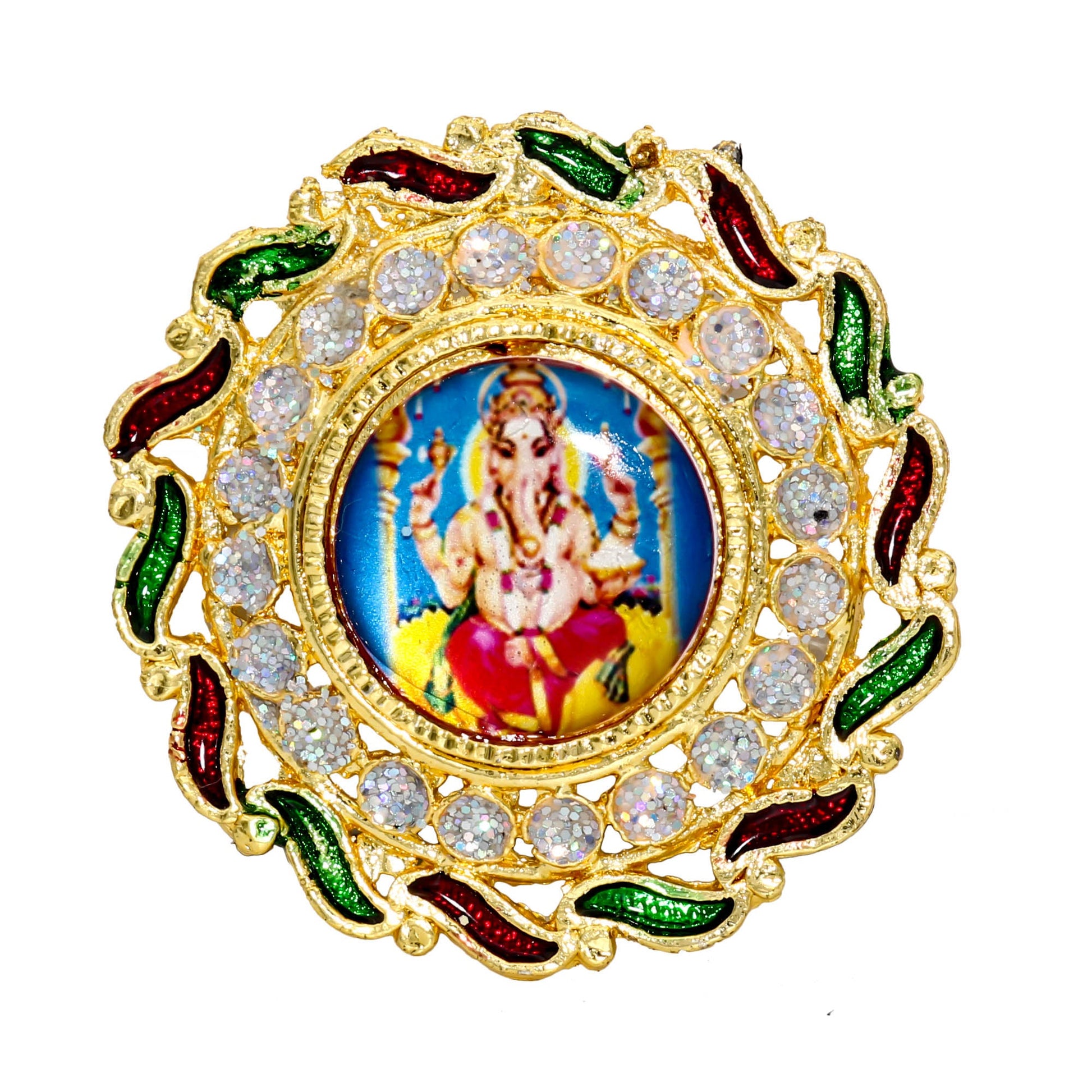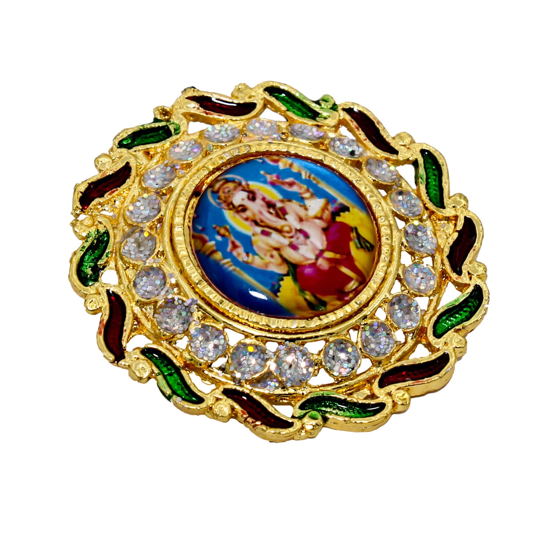Gold plated Ganesh Ganpati image, Meenakari, American Diamond, Stylish Sareepin