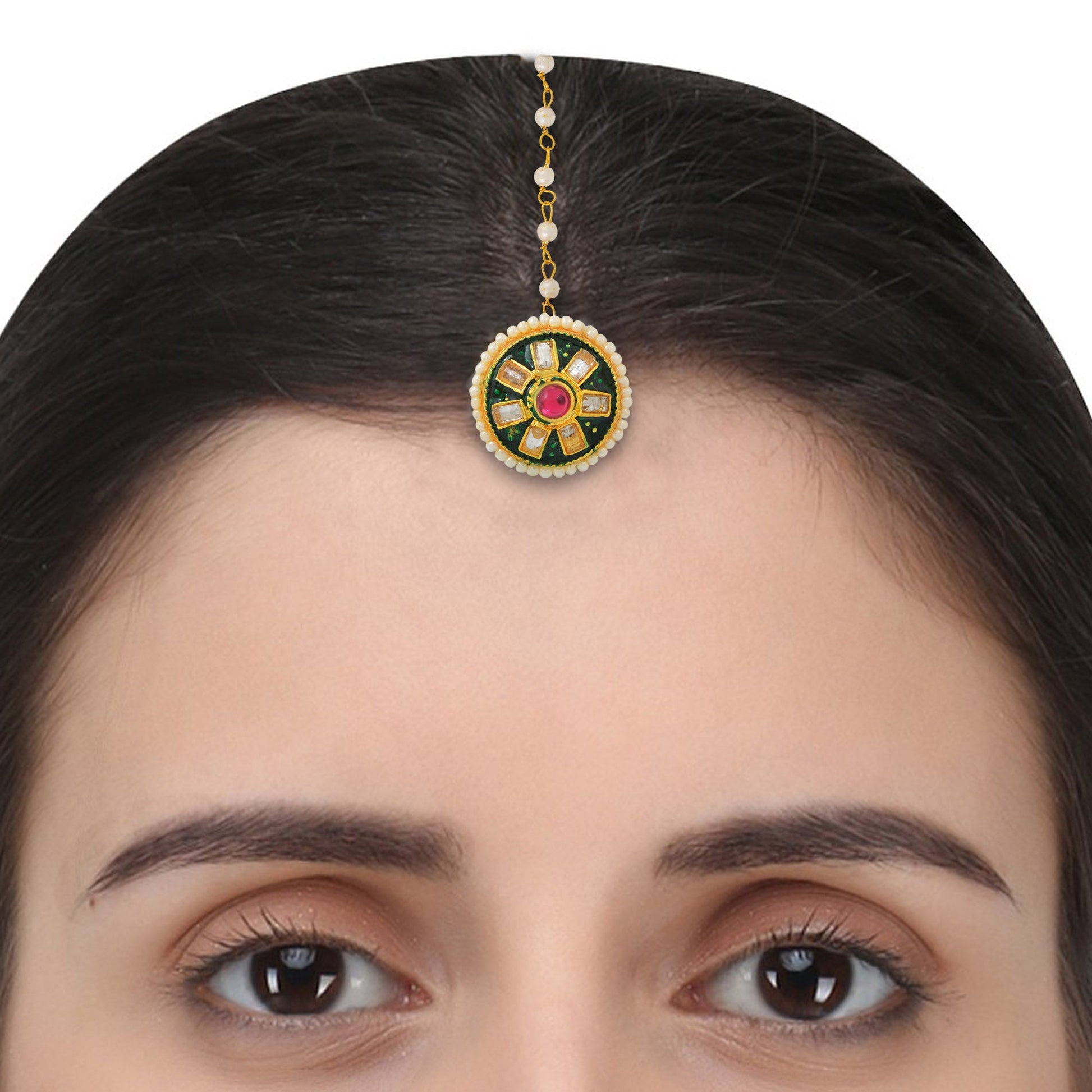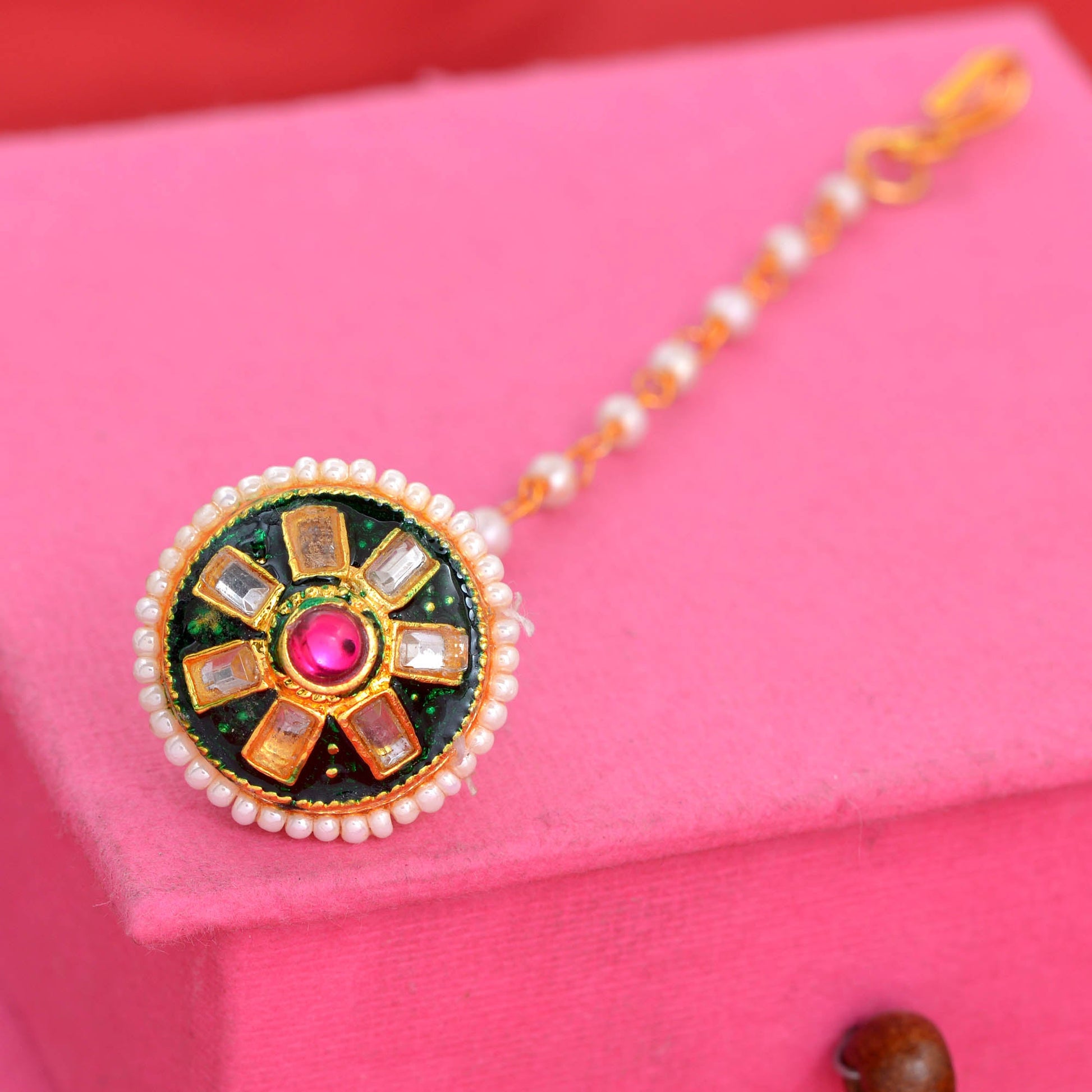 Gold Plated Kundan Meenakari Rajasthani Bindi BORLA Maangtika