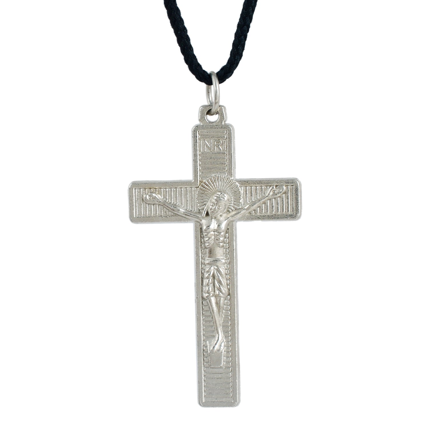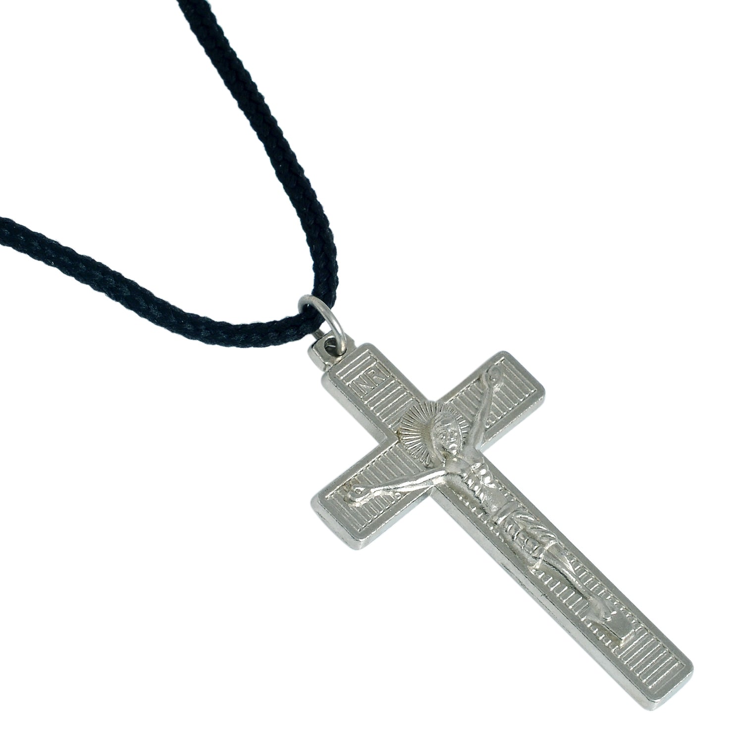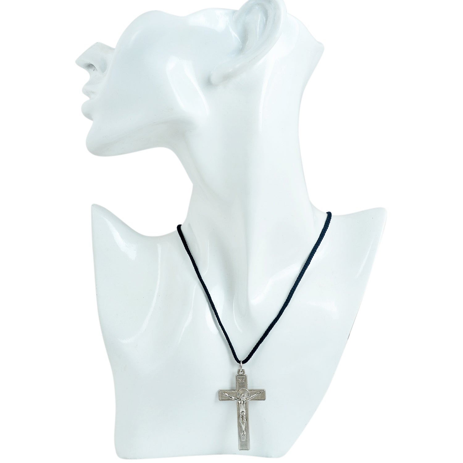 Oxidised Silver tone Halo Jesus & Cross Pendant