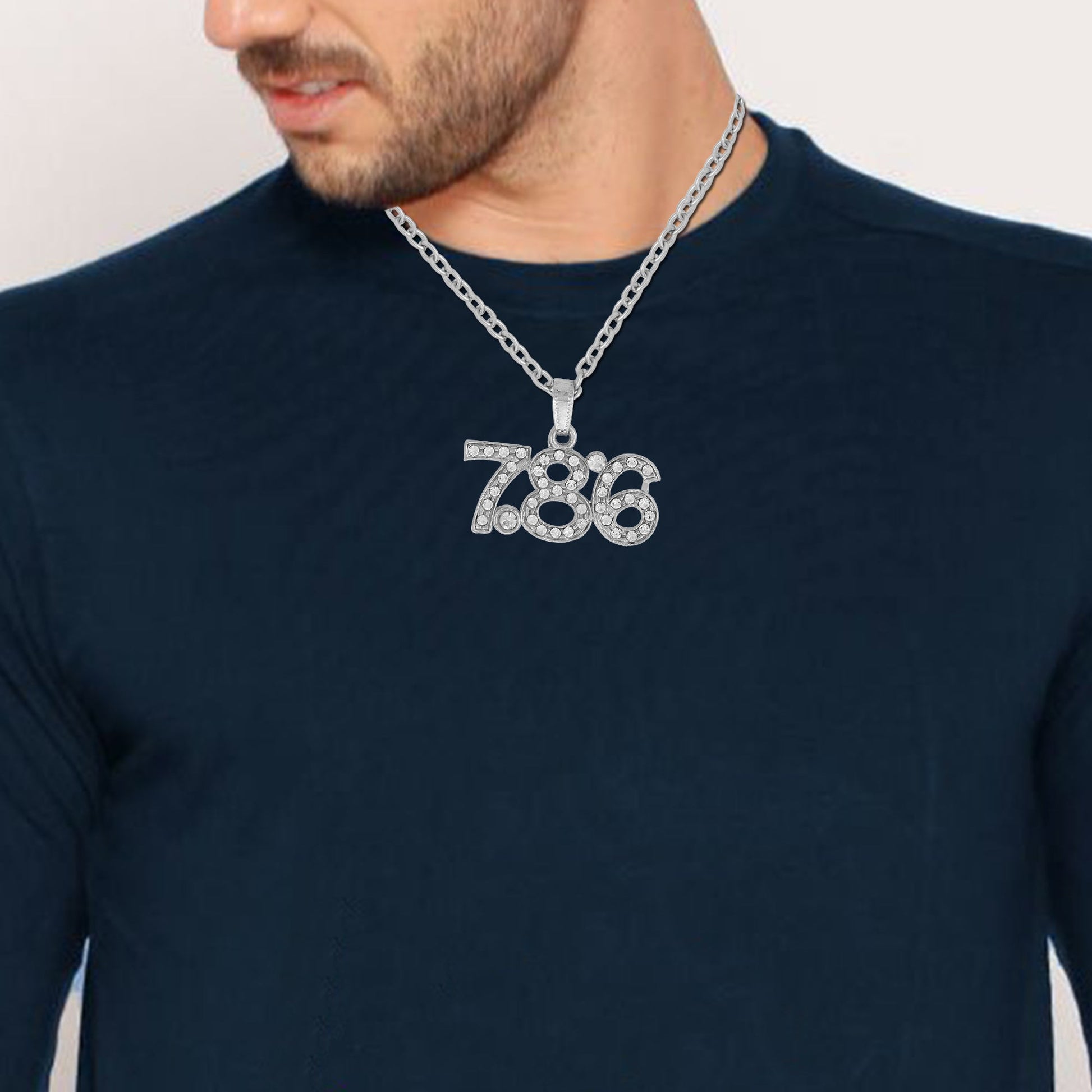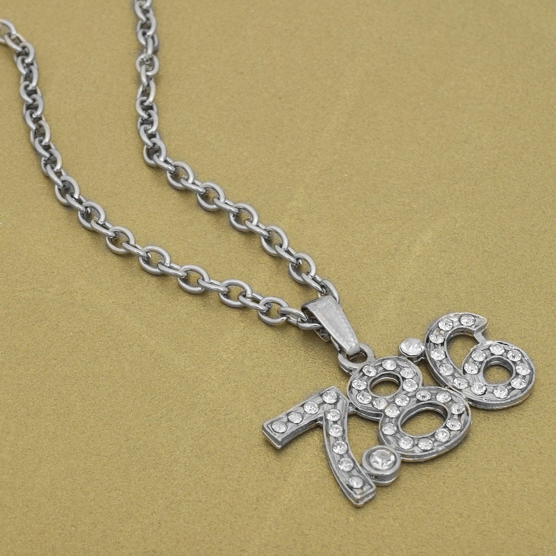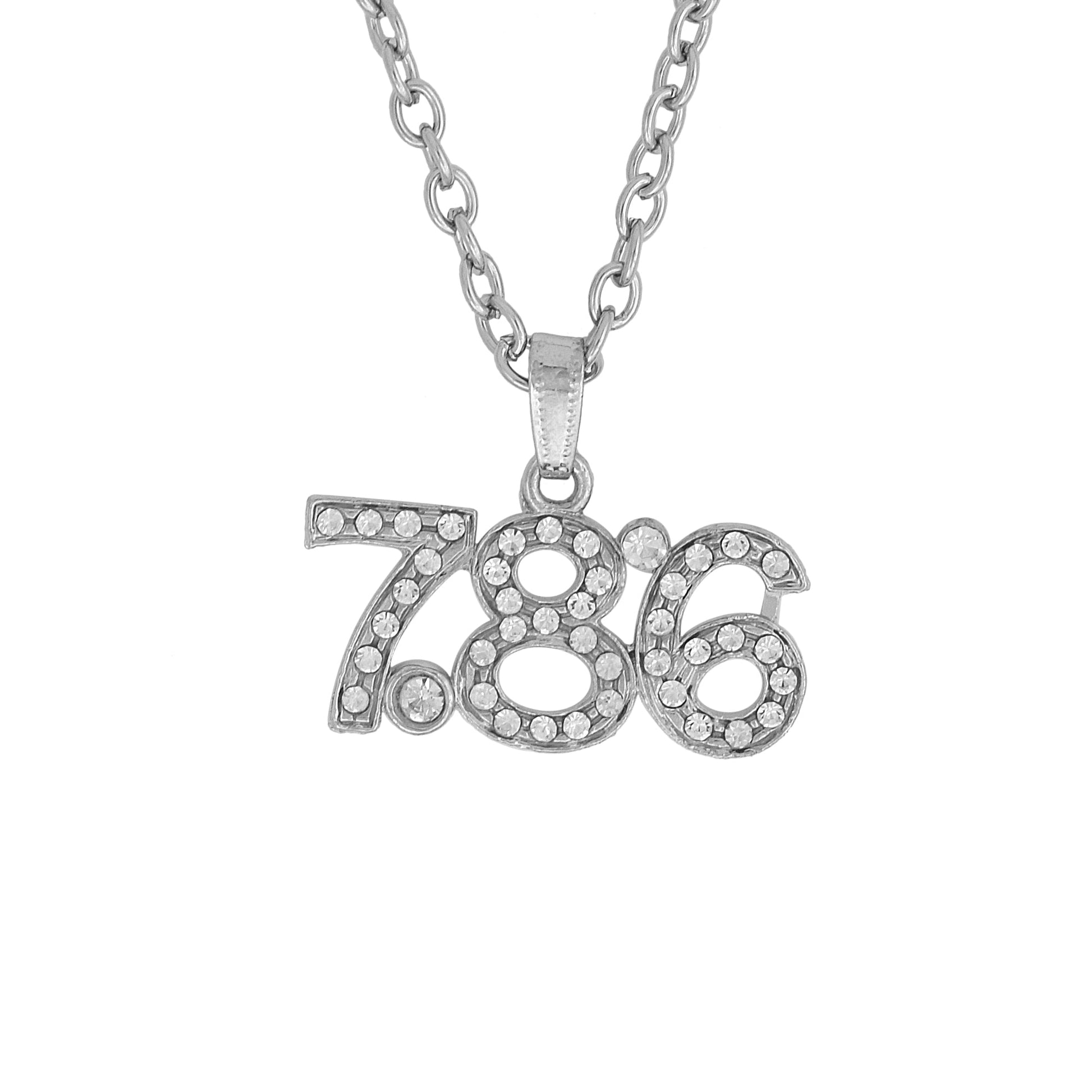 Silver plated Brass CZ 786 letters muslim islam chain Pendant