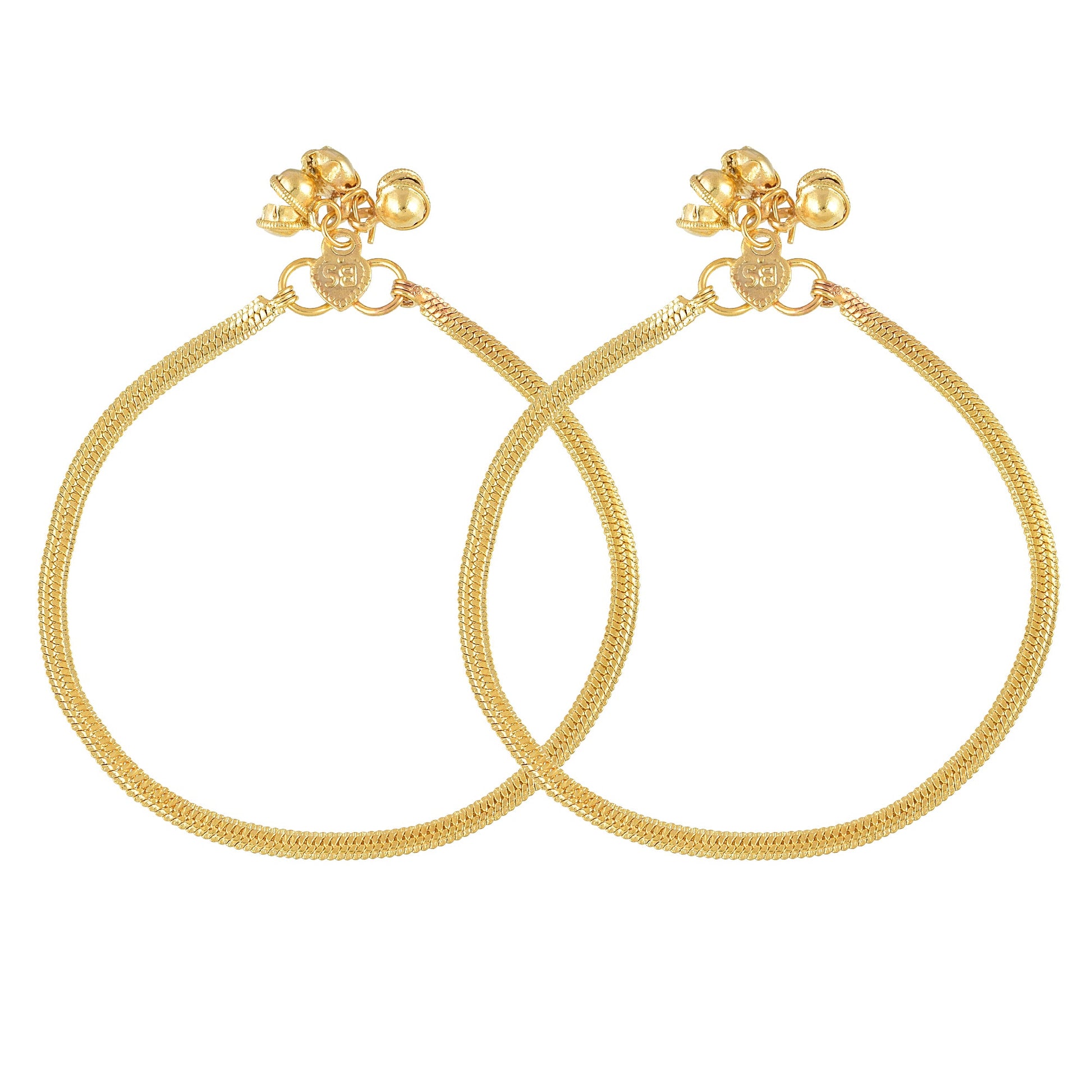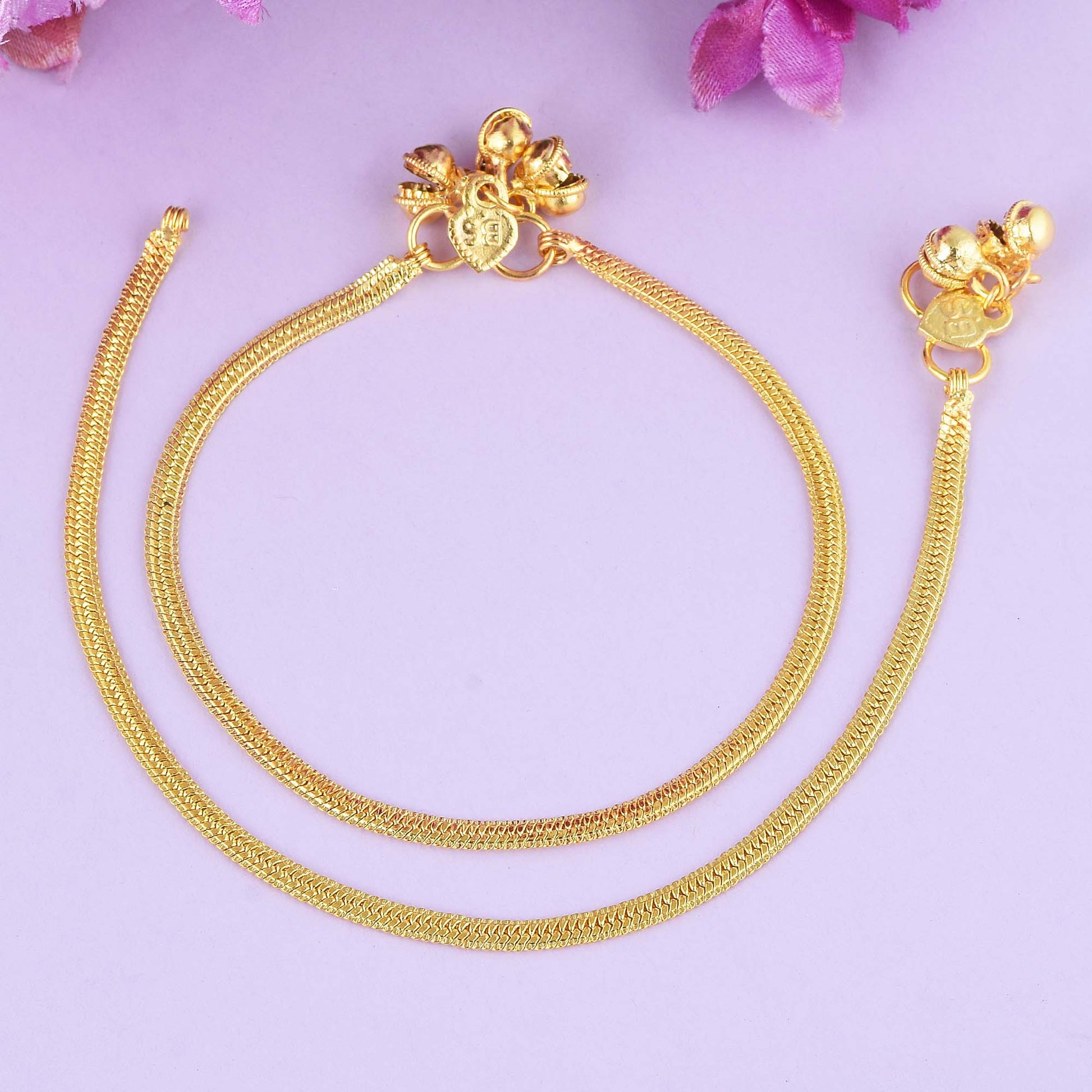 Gold plated Flat snake chain design ghungroo anklet for Women