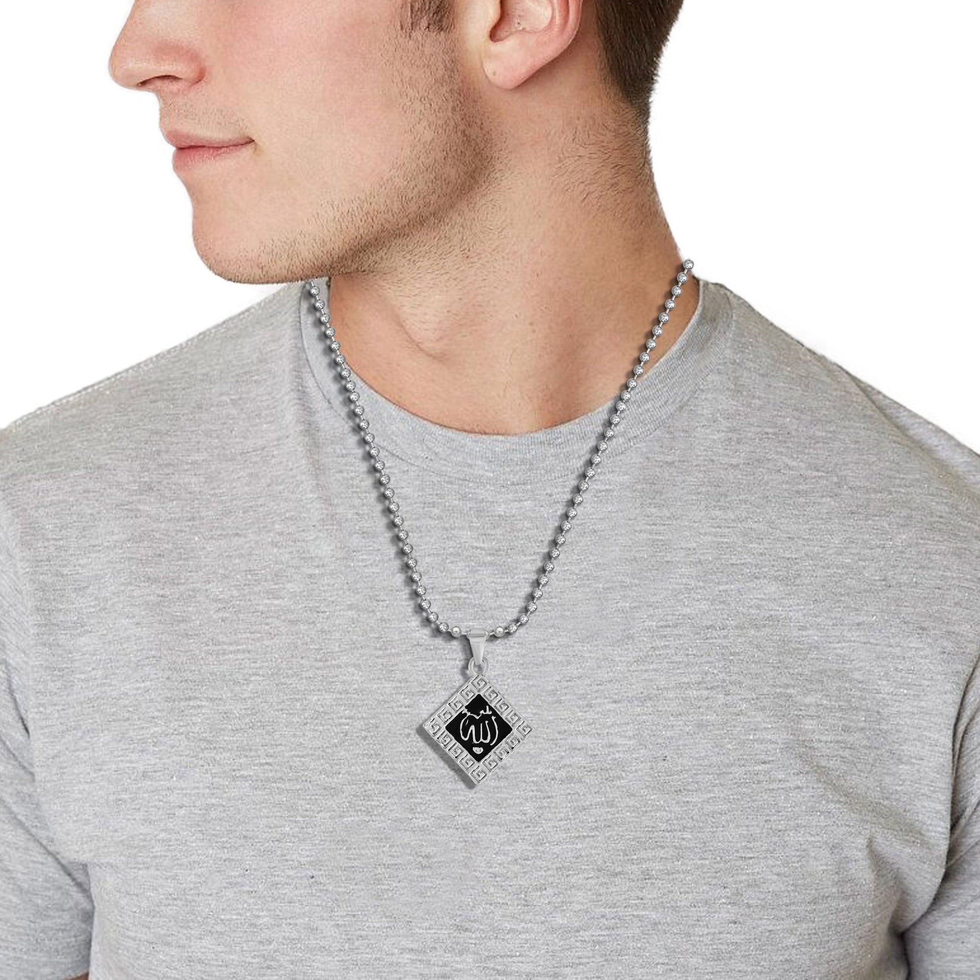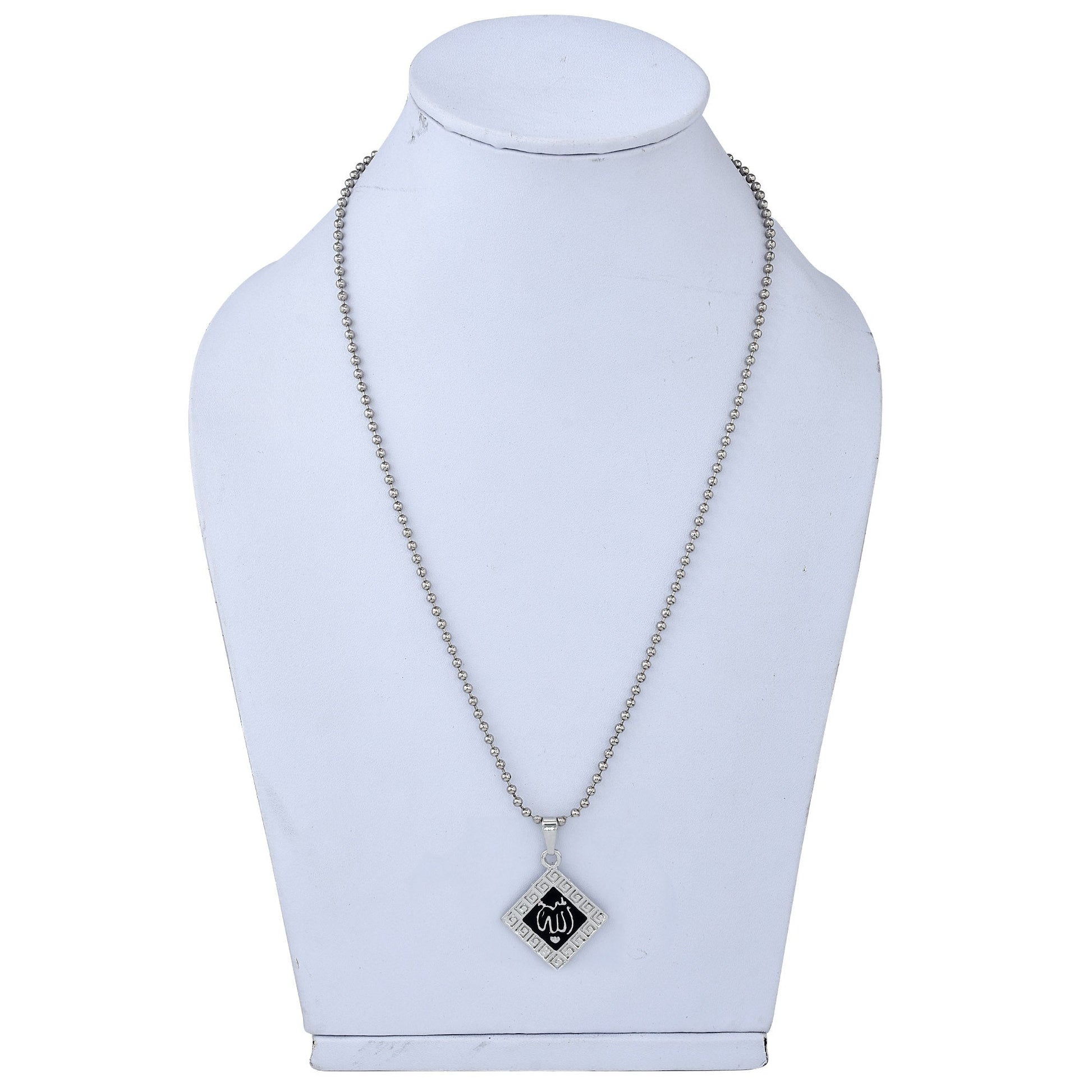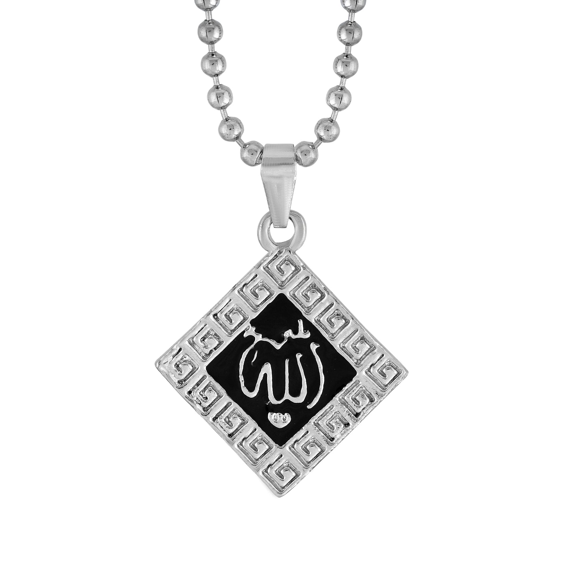 Silver plated, Kite shaped, Black Enamel, Allah Word, Islamic, Muslim chain pendant