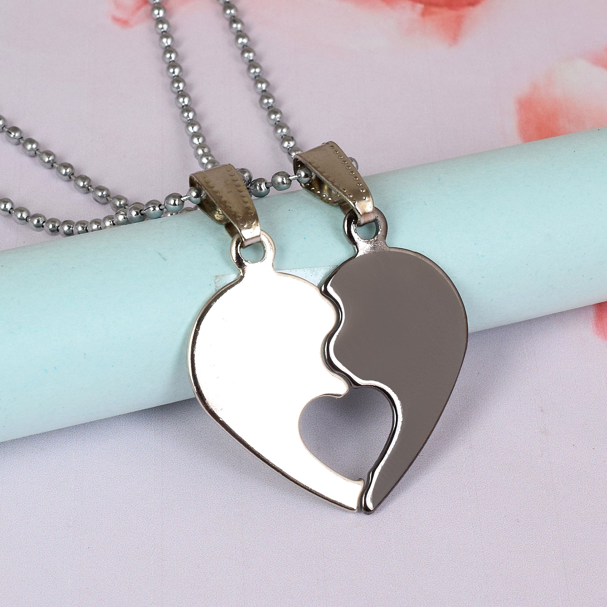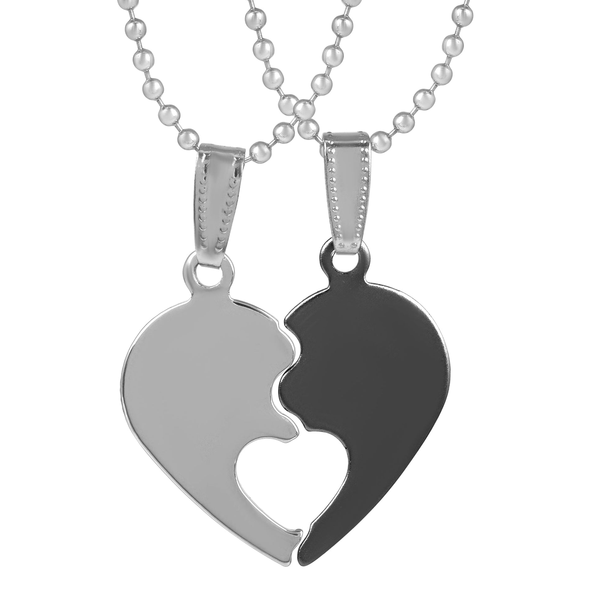 Stainless Steel Black and White two parts Broken Heartshape Love Chain Pendant
